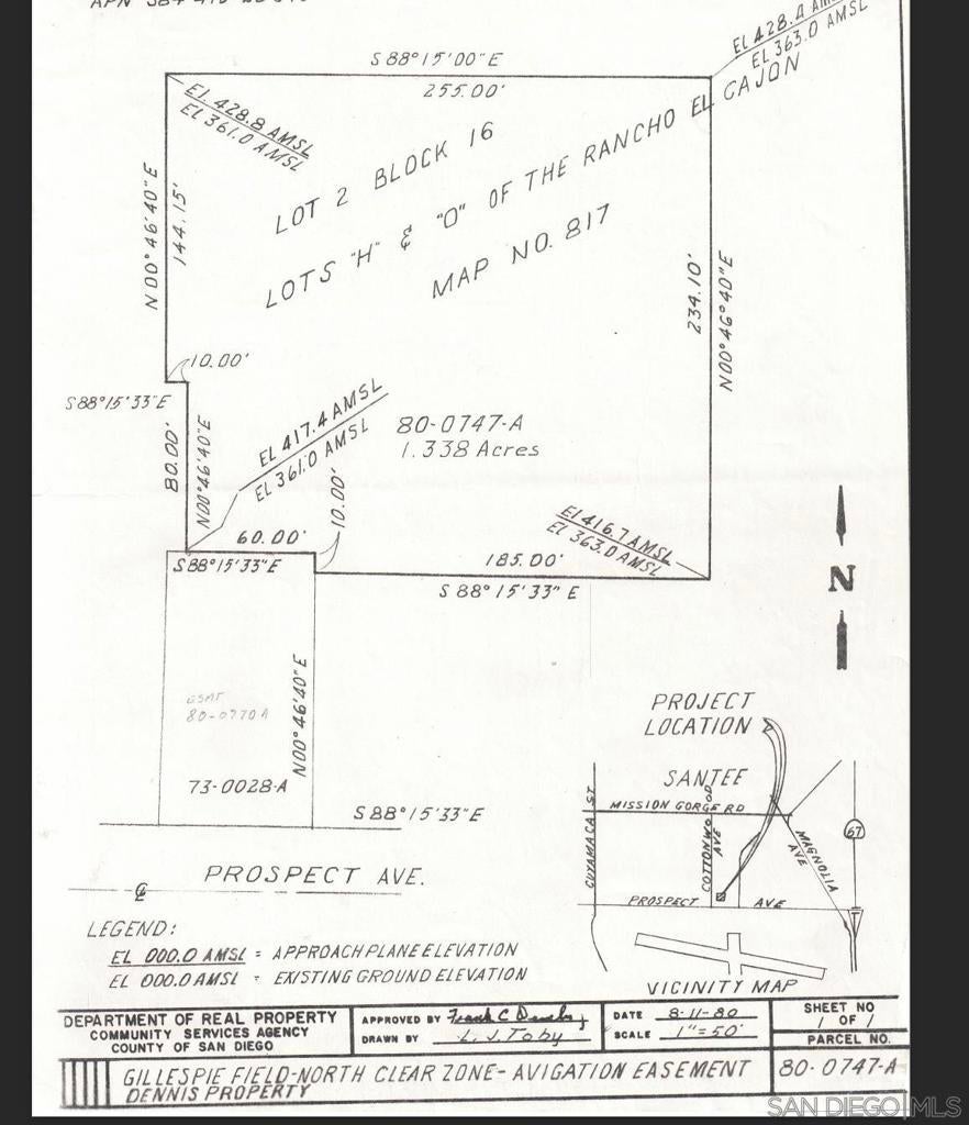 **Prime Commercial Land Opportunity in San Diego County** Discover a rare investment opportunity in San Diego County! We present two commercial parcels, each with a potential high cap rate for land development. The FAA has a preliminary approval approved for storage/equipment parking use on these vacant lots, totaling 1.34 acres. **Key Features:** - Parcel 1 (APN 384-410-76-00): 31,798 sq. ft. - Parcel 2 (APN 3385-410-20-00): 26,571 sq. ft. - FAA Preliminary Approval for Storage Use - Gillespie Field Overlay Zone - Light Industrial Zoning - Triple Net Lease Option: $8,500 for both parcels - Individual Parcel Lease Rates: $3,719 (Parcel 1) and $4,451 (Parcel 2) - Convenient Ingress and Egress on West Side (East May be Availble) **Additional Information:** - The adjacent parcel, grandfathered for two single-family residences, may be available for sale. Call the Agent for details and/or to submit an offer. - Located in the Gillespie Field Compatibility Zone, ensuring strategic development. - Check the Gillespie Community Land Use Plan (Page 32), and Gillespie Field Compatibility Plan (Pages 71-72, 107-112) for detailed zoning insights. **Sales Details:** - Total Sales Price: $899,900 - Acreage: 1.34 acres (58,369 sq. ft.) **Important Notes:** - No structures can be built under the Gillespie Community Land Use Plan and avigation easement on this particular property. - Verify all information with the FAA, the County of San Diego, and the city of Santee for approvals.