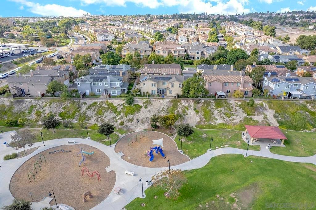 Beautifully maintained detached home in the coveted Cottage Lane community of Windingwalk. This residence offers the rare combination of privacy, serenity, and sweeping mountain views, plus the spaciousness of the largest model in this charming garden-style neighborhood. No shared walls and a warm, quiet, tucked-away feel from the moment you walk up the landscaped pathway to the front door.Inside, the home is surprisingly large and feels even more expansive in person. The flexible floor plan includes a full bedroom and bathroom on the first floor, ideal for multigenerational living, guests, or a private work-from-home setup. The front living room with double glass doors makes a perfect dedicated office, sitting room, or creative flex space. Upstairs, the oversized loft lives like a second family room, great for a playroom, gym, media space, or homework hub.The heart of the home is the upgraded kitchen with stainless steel appliances, opening to the inviting living and dining areas with rich maple hardwood floors. The home also features solar, offering energy savings and efficiency. The backyard truly sets this property apart: enjoy unobstructed views of rolling hills, peaceful sunrise mornings, and the charming overlook of the neighborhood park just beyond, the perfect blend of openness and connection to the community. The Windingwalk area is known for its walkability, resort-style amenities, and top-rated Camarena Elementary just steps away and has it all: community pools, parks, playgrounds, Otay Ranch Town Center, dining and miles of scenic trails. The Cottages HOA covers the common area maintenance, common area landscaping & tree service, pool facility, and common area pest control service.Winding Walk master Association dues include: Access to the facilities: 3 pools, 2 spas, wader, 2 clubhouses residents can rent, Gym, basketball & pickleball courts, common area maintenance/landscape.
