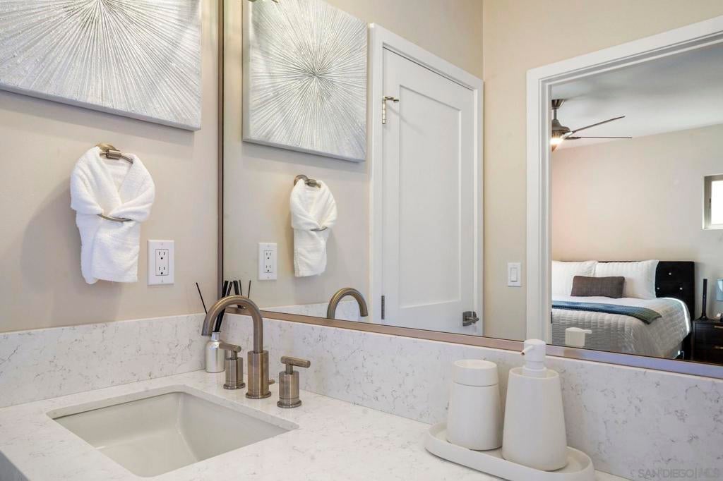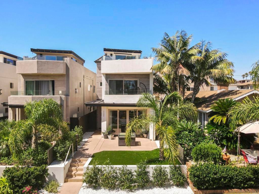 Experience modern coastal living at 1122 Oliver Ave. This newly built residence features an oversized rooftop lounge with fireplace and panoramic peek views to Mission Bay. The chef-inspired kitchen boasts shaker cabinets, granite counters, stainless steel appliances, and a striking backsplash. The living room features large cantina doors that completely open the home to the outdoors for seamless indoor outdoor flow. Every detail is elevated with curated fixtures, custom tiled bathrooms, and flexible living spaces. Complete with a private yard and two-car garage, this home blends luxury design with beachside convenience. Ideally located just blocks to Mission Bay, the boardwalk, countless restaurants/ cafes and world class beaches!