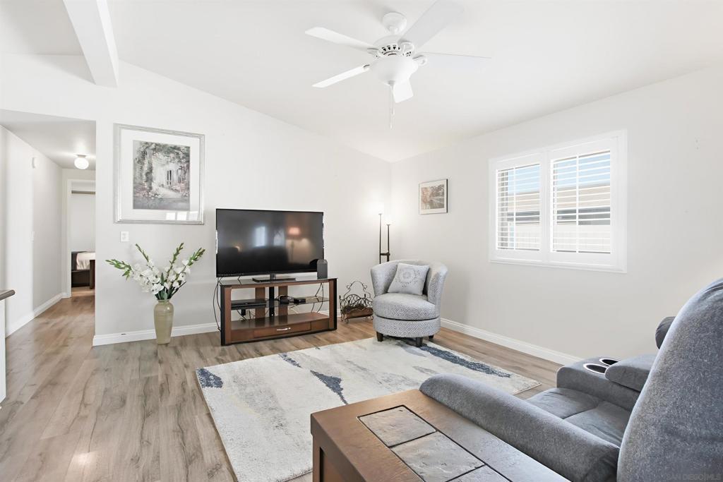 Variance Granted Detached. Welcome to your tranquil retreat at 1723 Kiwi Glen in Escondido with STUNNING VIEWS! This beautifully updated residence offers an inviting blend of modern comfort and serene living, nestled in a land-owned, 55+ community. Property is on a 433A permanent foundation. You own the land and it's not a lease! Step inside to a spacious 1,440 square feet of living space, featuring two bedrooms and two bathrooms. The interior boasts updated amenities including recessed lighting in the kitchen, laminate flooring, and a gas cooktop with hood. The large center island with pull-out storage drawers and a sit-at counter invites culinary creativity and casual gatherings. Dual pane windows and shutters enhance energy efficiency and privacy. The exterior is equally impressive with its low-maintenance landscaping and drip system, ensuring your yard looks beautiful year-round with minimal effort. The west side of the home features a custom putting green with synthetic turf, perfect for golf enthusiasts. Enjoy panoramic views from the privacy of your quiet covered patio. For your comfort, the home includes central heat and air conditioning, ceiling fans, and dual pane windows. Additionally, there's a convenient shed measuring 8x8, equipped with electricity, shelving, and a workbench for extra storage needs. Community amenities further enhance the lifestyle with Residents having access to a pool, spa, gym, and clubhouse with a library and shuffleboard. Plus, the HOA covers Cox cable and HBO.