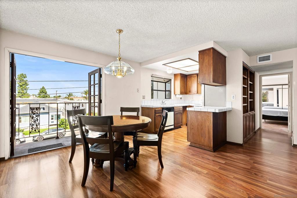Units in this building rarely come on the market so this one is not to be missed. Located just 10 minutes from San Diego International Airport, less than 10 minutes to downtown, and walking distance to restaurants, grocery stores, shopping hubs, nightlife, Balboa Park and the San Diego Zoo, this unit is located in one of the most central locations in the city. With 2 bedrooms and 2 bathrooms, this corner unit condo is full of natural light from both the north and east sides. You'll find French doors that open up from the dining room and primary bedroom leading to two separate balconies, and another set of French doors in the second bedroom with a juliet balcony facing east. The main living area is spacious and open with plenty of room for a living/TV room and possible work from home space. With in-unit laundry, two gated parking spaces (not tandem) and a storage locker, this is one of the most desirable communities in Hillcrest.