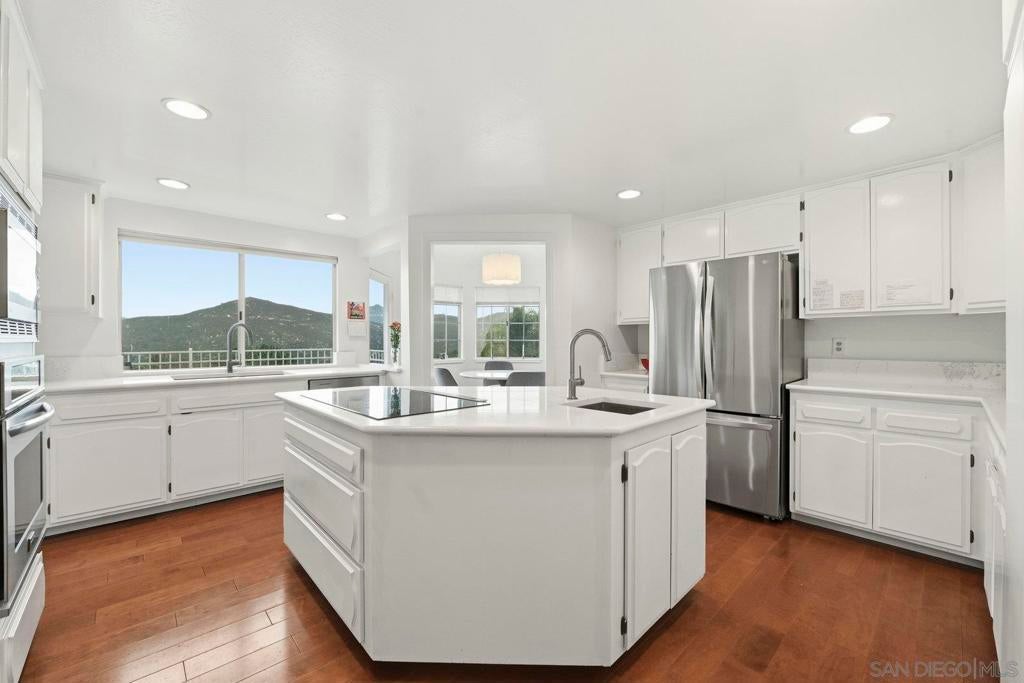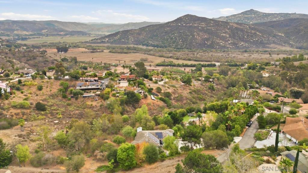 Endless panoramic views of San Pasqual Valley from nearly ever window and over sized decks on this double lot home. Adjacent 1.25 acre vacant lot, APN 239-251-75-00, is included in sale and provides space and privacy from neighbors. Expansive deck from living, dining, & breakfast room with that serene mountain views. House has been converted completely to electric, large solar (paid off), two Tesla backup batteries and EV charger inside the 3 car garage. Recently renovated, lots of storage. Privacy and views and a stones throw to Kit Karson park, 15 HWY and shopping.