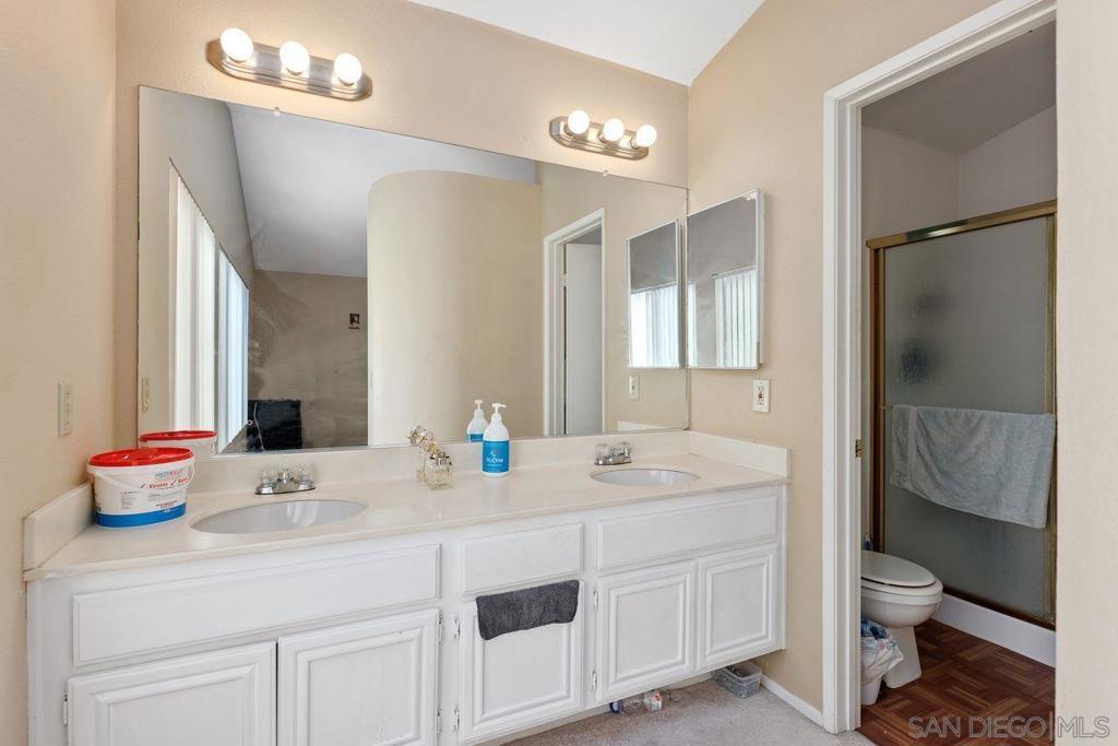 Alluring and highly sought after Shadowridge community home in a private and picturesque cul-de-sac leading to the complex amenities with a pool, spa, and lovely playground. Sitting atop an oversized lot with spectacular curb appeal invites you to your cozy great room featuring breathtaking high volume ceilings. Tons of natural lighting flood in to your eat-in kitchen leading you to your private and sweeping lush yard with plethora of usable space and opportunity. Upper level features your primary bedroom with vaulted ceilings and two secondary bedrooms featuring a hallway bathroom off your airy catwalk overlooking your great room. Spectacular location very close by to Rancho Buena Vista High, shopping in Albertson's, CVS, restaurants, Buena Vista Park/trailhead, and more! This is a must SEE!