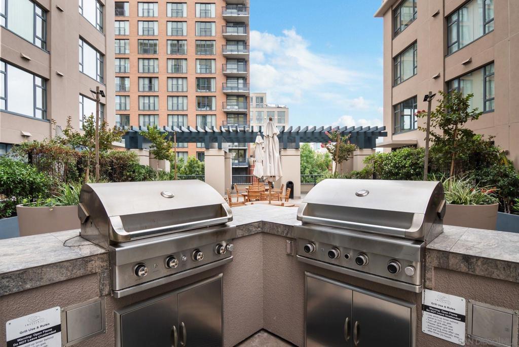Perfect downtown condo in the Trellis Building located in the highly desired area, walking distance to Convention center, in the heart of Gaslamp Quarter, close to Petco Park, restaurants, and nightlife. Experience the best of downtown in this spacious 1-bedroom + Large Den/Optional 2nd bedroom, 1-bath. This condo boasts an open floorplan with 9th ceilings with balcony look out.. Enjoy city view in every room. This residence features nearly 30 feet of linear floor to ceiling windows. The gourmet kitchen includes beautiful granite counters, stained maple cabinets, stainless steel appliances.