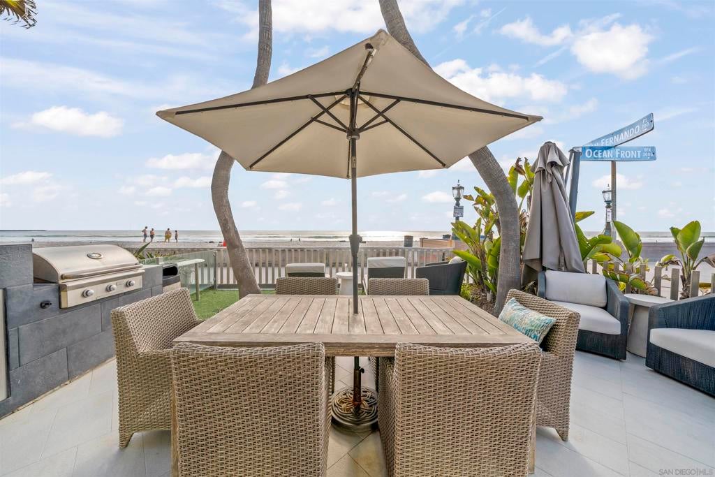 Oceanfront Living at Its Finest – South Mission Beach Welcome to your dream coastal escape! Perfectly situated on Ocean Front Walk in the heart of South Mission Beach, this exceptional 2BR/2.5BA condo offers an unparalleled beachfront lifestyle. With the sand and surf just steps from your door, this first-floor residence features an open-concept layout filled with natural light, modern finishes, and jaw-dropping panoramic ocean views. The spacious living area boasts floor-to-ceiling windows and collapsing glass doors that seamlessly connect to an expansive private patio – approximately 400 square feet – creating the ultimate indoor/outdoor living experience. Whether you're entertaining guests or simply unwinding, the patio’s built-in outdoor kitchen, fireplace and lounge area make it easy to savor the ocean breeze and spectacular sunsets. Additional highlights include a private garage parking space, direct beach access, and easy proximity to San Diego’s best dining, shopping, and entertainment. This is a rare opportunity to own a luxurious slice of Southern California paradise — don't miss it!
