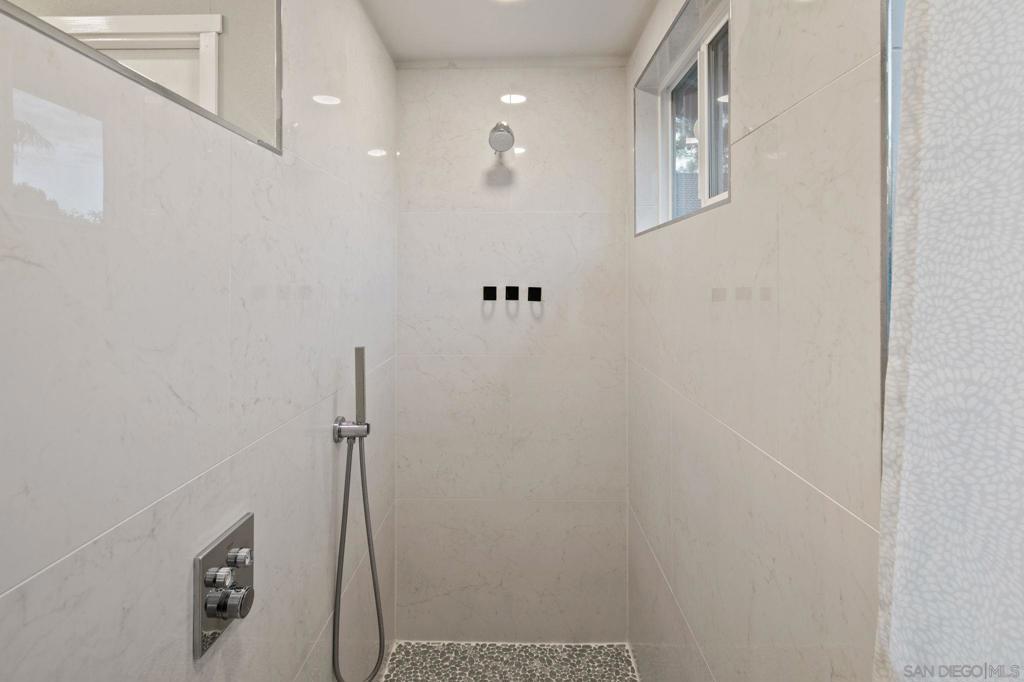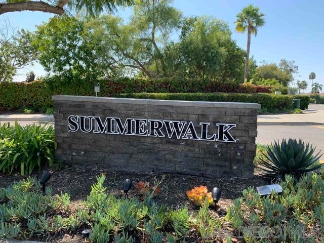 Experience refined single-story living in the coveted sought after Summerwalk neighborhood, ideally situated on a tranquil cul-de-sac with a welcoming front porch courtyard. Bathed in natural light, the open-concept living room welcomes you with soaring vaulted ceilings and seamless flow into a stunning designer kitchen. Thoughtfully remodeled, the kitchen showcases premium Bellmont cabinetry with soft-close drawers, sleek stainless hardware, Caesarstone Alpine Mist quartz counters with dramatic waterfall edge and breakfast bar seating, a high-end Fisher & Paykel double-drawer dishwasher, and a top of the line professional-grade six-burner gas range with stainless hood. Additional highlights include a touchless pull-down faucet and timeless white subway tile backsplash. Exquisite Porcelanosa tilework elevates both bathrooms, featuring contemporary vessel sinks, floating vanities, LED lighting, upgraded fixtures, and heated towel bars. The sophisticated primary suite offers a custom walk-in closet with built-ins, floor-to-ceiling mirrors, dual sinks, walk in shower and dimmable LED ceiling lighting. Every detail has been curated for comfort and quality, including wide-plank Legno Bastone engineered hardwood flooring, central A/C and heat, newly installed Simonton windows and sliders, modern baseboards and moldings, newer interior and exterior paint and Levolor blinds throughout. The expansive landscaped backyard is a private retreat with upgraded patio pavers, a custom retaining wall, lush garden space, and mature avocado, citrus, and palm trees along with vibrant flowering plants, ideal for indoor/outdoor gatherings and entertainment. Ideally positioned within a short distance to top-rated schools, La Costa Canyon High School and Mission Estancia Elementary, Stagecoach Park, scenic hiking trails, restaurants, and premier shopping—and surrounded by two community pools—this home offers an exceptional blend of luxury, convenience, and coastal-close living and less than 5 miles from the beach!
