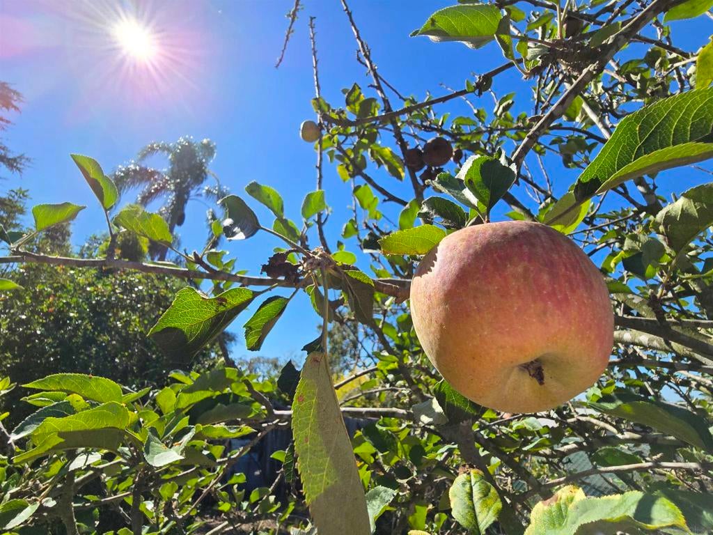 Welcome to this charming 3 bedroom, 2 bathroom with a bonus sunroom, not included in the sq. footage, orchard house single-story residence set on a generous 1.01-acre lot with over 80 mature fruit trees, offering comfort, character, and a delicious connection to nature in your own backyard. Fruit trees and an inviting Art Deco pergola grace the front entrance and patio, setting an earthy and stylish tone as you enter. The heart of the home features an updated kitchen that boasts vibrant custom cabinetry, sleek countertops, and stainless steel appliances—perfect for everyday living and effortless entertaining. Discover the convenience of a dedicated cooler room—a thickly insulated room ideal for extending the freshness of produce picked from the orchard. This versatile room also functions beautifully as a cool pantry or wine room. A large fireplace creates warmth and connection in the living room and a stunning sunroom spans the back of the home, capturing sweeping views of the orchard landscape and inviting you to bask in natural light through its array of windows. The thoughtful split-bedroom floor plan places two bedrooms and a full bathroom on one side of the home, while a private bedroom and additional bathroom create an ideal retreat on the other. A deck off the back of the house allows for outside entertaining/relaxing with an orchard view and an additional covered deck off of the side of the house can be used for gathering in the shade or keeping exercise equipment out of the rain. A new roof is on the house and it is freshly painted inside and out, turn key and ready for you to move right in. Immerse in nature as you meander in your own large backyard full of mature fruit trees. The previous owner sold the fruit at farmers markets and health food stores around the county. The property and orchard has always been treated organically but is not certified organic. Enjoy exotic seasonal flavors throughout the year. We have included a list of the fruit trees on the property in the supplemental section. Come take a look and make this beautiful orchard house your home.