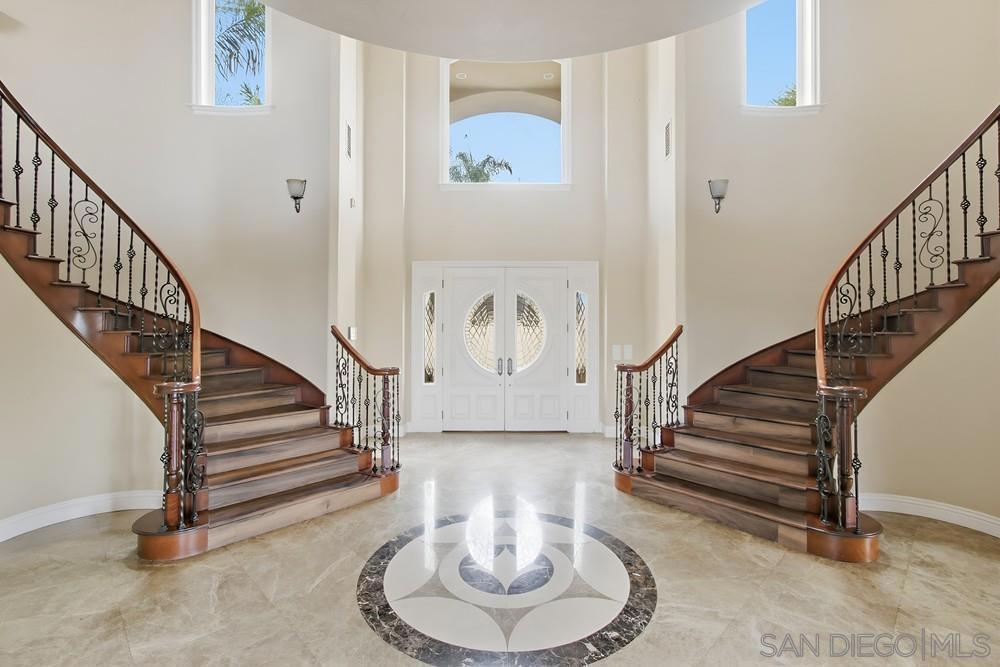 SHORT SALE OPPORTUNITY! Welcome to Château Belle Vue, where luxury, privacy, and panoramic views come together in this stunning Mediterranean estate nestled in the hills of Bonsall. Set on 2.44 acres within a gated community, this custom-built home is designed to impress from the moment you arrive. A dramatic double staircase entry with dual art niches ushers you into a grand living room framed by breathtaking picture windows that capture the surrounding beauty. Upstairs, you’ll enjoy the expansive primary suite, complete with a generous bathroom, jacuzzi tub, and a true sense of retreat. This level also features a dedicated bar area and a separate loft—perfect for hosting, relaxing, creating additional entertaining zones, or even converting into a fifth bedroom. Downstairs, three additional bedrooms each include en-suite baths and walk-in closets, making the home ideal for multi-generational living or guest privacy. The chef’s kitchen offers an exceptional space to cook and gather, boasting premium appliances, an oversized pantry, and dual islands. Formal and casual dining spaces, along with a temperature-controlled wine closet, elevate the home’s entertaining appeal. A large first-floor laundry room provides excellent storage and direct access to the outdoor patio. Step outside to a backyard designed for relaxation and gatherings, complete with a built-in BBQ and plumbing ready for a portable setup. With endless potential to create your own outdoor oasis, this property beautifully blends elegance, comfort, and elevated Bonsall living.