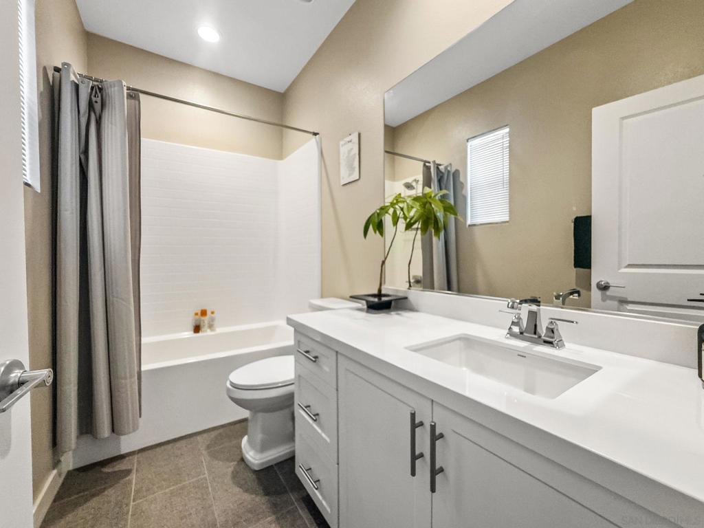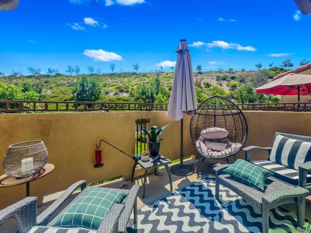 Step into this stunning, highly updated home in the gated community of St. Cloud. This residence is a true charmer, with a functional and efficient layout perfect for modern living. The bright and open great room is an entertainer's dream, flowing seamlessly from the kitchen. The kitchen is a chef's delight, featuring stainless steel appliances, abundant counter and cabinet space, and an island with bar seating. Relax and enjoy the serene greenbelt views from the great room or step out onto the adjacent, spacious balcony to take in the scenery. Upstairs, the primary suite is a private retreat. The en suite bathroom boasts a custom-tiled shower, a private water closet, a walk-in closet with organizers, and a double vanity with "his and hers" sinks. A second bedroom with its own en suite bathroom is also located on this level. The entry level provides a versatile space with a bedroom and a full bathroom, ideal for a private office, guest quarters, or multi-generational living. The home also includes a convenient laundry room on the main living level. The two-car garage offers plenty of space for vehicles and extra storage. Living in St. Cloud means enjoying a resort-like lifestyle, with amenities including a large pool and spa, a barbecue area, a gym, a playground, and a basketball court. Much of the furniture in this home is also available for purchase, making this a truly turn-key opportunity.