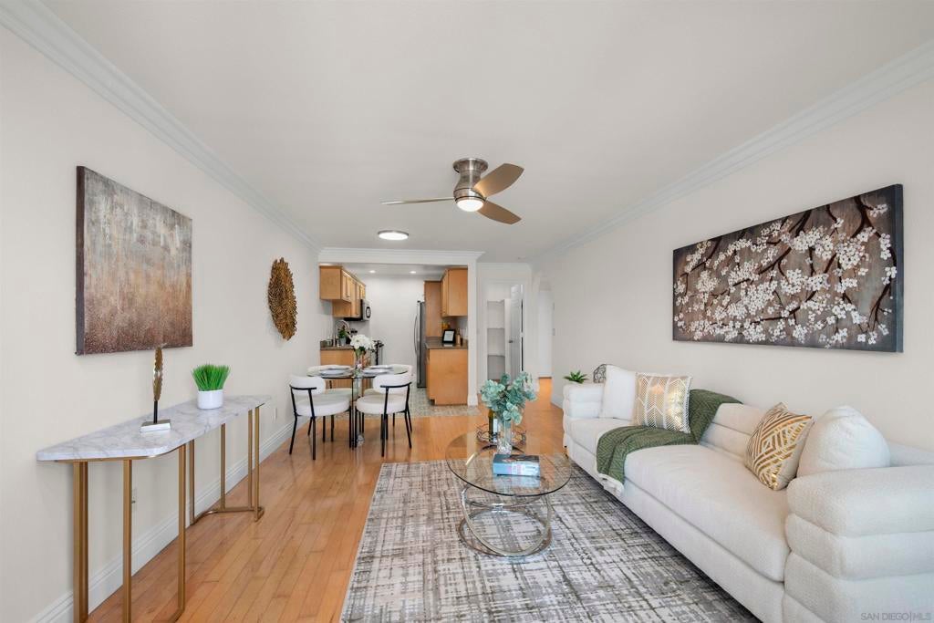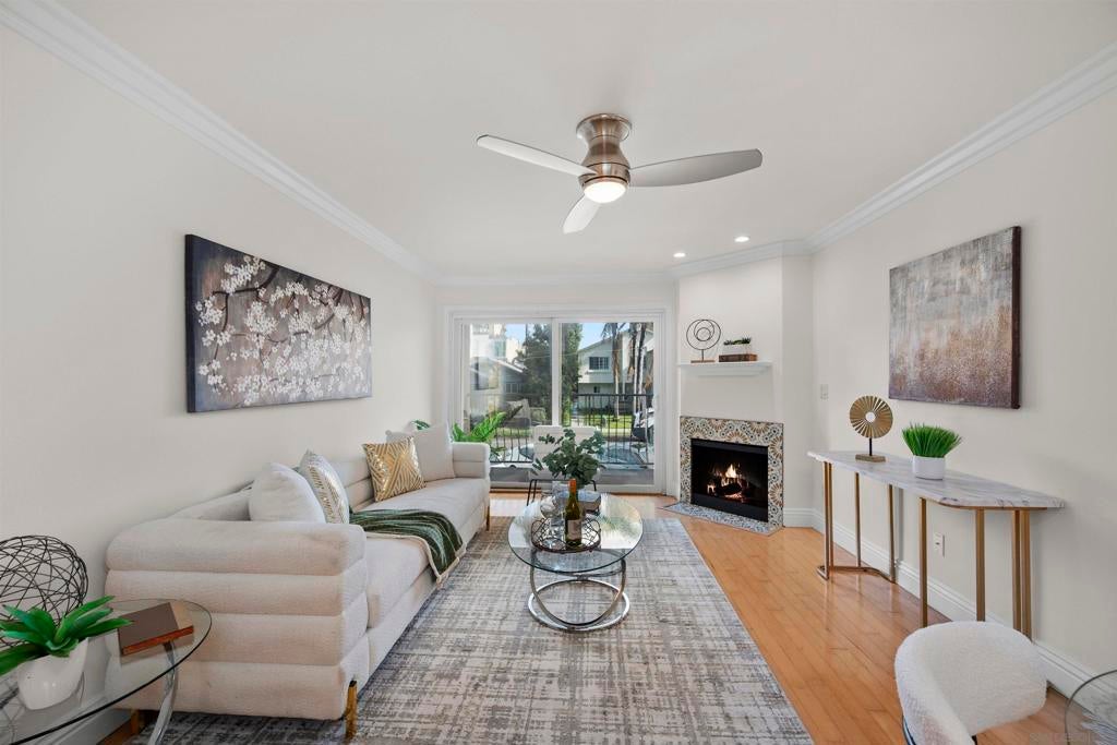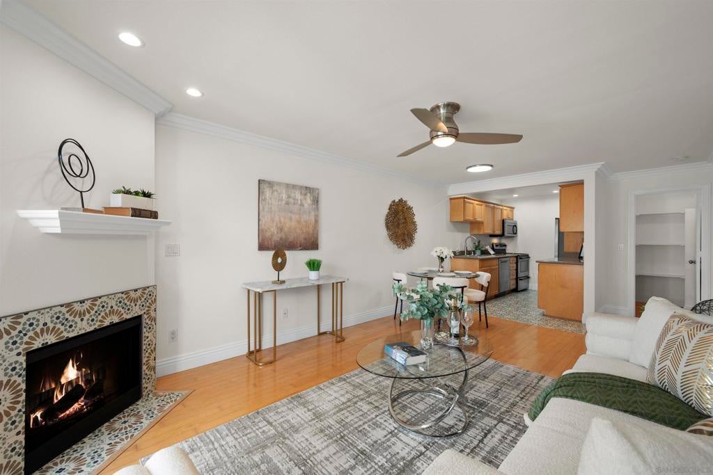 LOCATION, LOCATION! Experience your ideal Uptown lifestyle in this beautifully refreshed Cliffbridge Estates residence featuring wood floors, elegant crown molding, and an ambient fireplace accented with new LED lights and custom tile that ties seamlessly into the updated kitchen. Enjoy upgraded double pane sliding doors with a screen that opens to your private balcony. The kitchen includes stainless appliances, stone surfaces, ample cabinetry, new custom tile, new kitchen sink/faucet, new LED lights and an oversized walk-in pantry offering exceptional storage. The spacious bedroom features new carpet, dual closets, and a ceiling fan, while the bathroom and tub enclosure shine with new custom epoxy surfaces. With a fresh paint job throughout, newer dual-pane windows, and a designated parking space, this is Uptown living at its finest—just steps from all the dining, shopping, and energy Hillcrest is known for. Cliffbridge Estates is a coveted and secured community in the heart of Hillcrest. Enjoy being within walking distance of the Hillcrest Farmers Market, Balboa Park, some of the city’s best restaurants, and the iconic nightlife for which Hillcrest is known. Residents enjoy a community pool, spa, tranquil courtyard, and fitness center: all for lower-than-average HOA fees!
