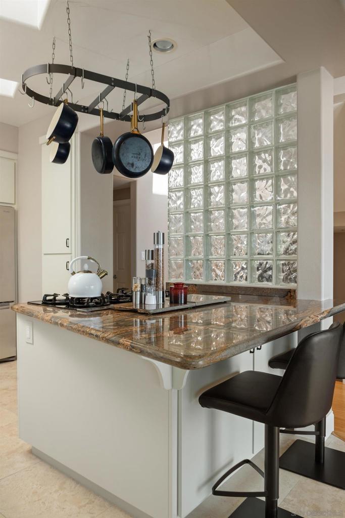 Step into effortless coastal comfort at this multi-level Pacific Beach condo, perfectly positioned just steps from the bay and a short walk to the beach. Designed for extended stays, this residence offers ocean-view living with a relaxed yet refined aesthetic throughout. The main level features a bright and inviting living area with plush seating, a cozy fireplace, and access to a balcony where you can enjoy a glimpse of the ocean beyond the palms. Upstairs, the spacious primary suite features a king bed, custom built-ins, a fireplace, and a private balcony with partial ocean views. The second bedroom offers a queen bed and built-in shelving, while the third bedroom doubles as a home office with a full-size Murphy bed, perfect for flexible use during your stay. Three full bathrooms are conveniently located throughout, all with tasteful, functional finishes. At the top of the home, the private rooftop deck offers a true escape, complete with comfortable seating, a fire pit, and panoramic views of the ocean and bay. Whether you're sipping morning coffee or watching the sun set over the water, this space invites you to relax and take it all in. Additional comforts include central air and heat, in-unit laundry, two parking spaces in the garage, and street parking available. With its unbeatable location, ocean outlooks, and thoughtfully designed layout, this Pacific Beach retreat is an ideal coastal home for an extended stay. This is a furnished seasonal rental. Pricing varies by length of stay and seasonality. Published amounts are range estimates only. Final pricing, fees, and availability are subject to change until a fully executed lease agreement. Please inquire for exact quote and terms.