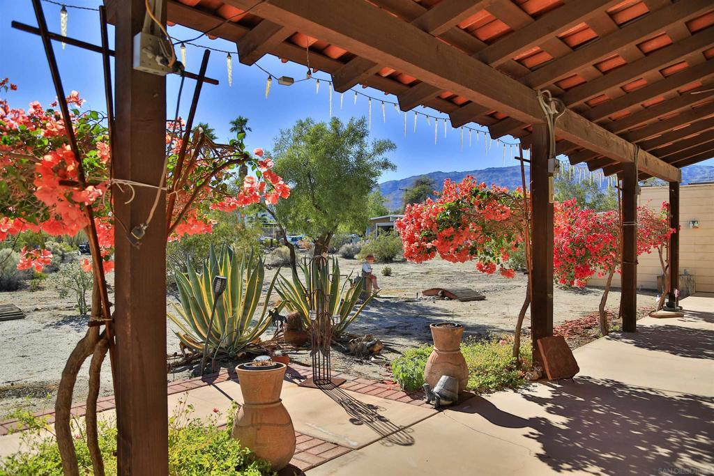 Cute Southwestern home with views of the mountains. This home has a horseshoe driveway leading up to the large covered carport/patio in front. Inside is spacious with an open kitchen floor plan with lots of cabinet space, a formal dining room plus dinette, separate laundry room, and a large master bedroom with two full baths. There is a back covered porch overlooking the fenced back yard, plus another carport area toward the front. Comes complete with paid solar, and it is being offered furnished!