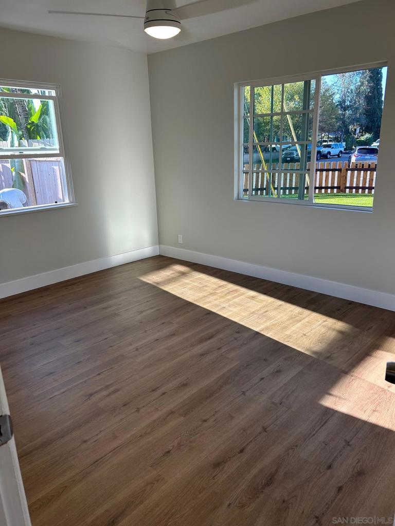 Recently remodeled from top to bottom, this bright 3-bedroom, 2-bathroom home provides a clean and welcoming space for its next tenants. Interior pictures coming soon Inside, you'll find fresh interior paint, new Luxury Vinyl Plank flooring, and new windows throughout. Each bedroom includes a ceiling fan for added comfort, and the home is equipped with a new AC unit. Both bathrooms have bathtub/shower combos and offer clean, updated finishes. The kitchen has been fully renovated and features brand-new stainless steel appliances (refrigerator, stove, microwave) paired with stylish two-toned cabinets. The home has a brand-new roof, upgraded plumbing, and updated electrical. Outside, you'll find an attached, 1-car garage with a new garage door and convenient driveway parking for 2 additional cars. A brand-new washer and dryer located in the garage for easy laundry access. The property boasts a fully fenced yard, ideal for privacy and outdoor enjoyment. The front yard is upgraded with newly installed turf for low-maintenance curb appeal, while the rear yard includes a room for dining or gilling on its concrete patio. Centrally located, this property is minutes from the freeways (I-15, SR-78), shopping and restaurants. Available 12/1/2025 - Must see in person!