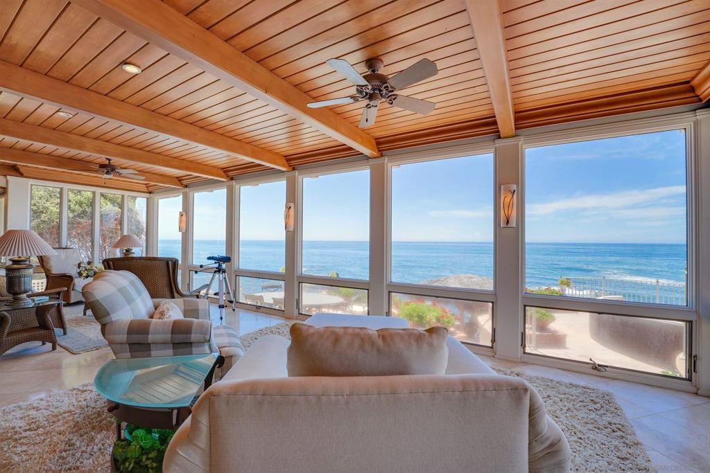 Sweeping panoramic ocean views from the stunning ocean front home known as the “Rosecliff Cottage” located in Lower Hermosa. Enjoy the sights and sounds of the Pacific Ocean as your backdrop from this amazing residence. The home features a gated front courtyard w/a rose garden and a waterfront back patio/deck area w/ firepit. The main floor hosts a spacious living room w/ fireplace, a gourmet kitchen w/an oversized island, dual ovens, a built-in cooktop, full-size fridge, wine storage, dishwasher, microwave, and breakfast area. The primary bedroom w/ fireplace and spa-like bathroom with dual sinks, showers, and large soaking tub, and an additional en-suite bedroom. Upstairs you will find two separate private ocean view bedroom suites and plenty of storage. This home is close to beaches, shops, and restaurants and is a true La Jolla gem.