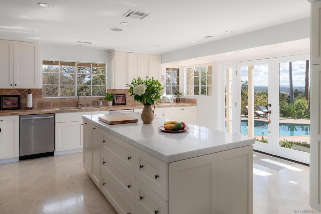 Perched on a desirable hilltop on the coveted West Side of the Covenant, this stunning single-level ranch-style estate is a private sanctuary set on 3.6 lush acres. A long private driveway and graceful circular drive introduce the home with an elegant and serene arrival, offering unparalleled privacy and sweeping views. The light-filled main residence features 4 spacious en-suite bedrooms, 4.5 bathrooms, and approximately 4,759 sq. t. of refined living space designed for both grand entertaining and intimate everyday living. Highlights include a gourmet kitchen that opens seamlessly to the sparkling in-ground pool and expansive patios, a generous living room built for gatherings, a sunroom bathed in natural light, a dedicated office, and indulgent master suite you won’t want to leave. A charming detached 2-bedroom, 2-bathroom guest house with full kitchen is perfect for family or guests. Outdoor living is elevated with a detached gym, citrus groves, raised garden boxes, and plenty of room to roam. Residents enjoy direct access to 60+ miles of pristine equestrian trails, the highly acclaimed Roger Rowe School (K-8), and the community’s legendary lifestyle. Additional features: Two-car garage with EV charging. Owner pays electric, high-speed internet, and HOA fees – an exceptional value in the Covenant. Experience luxury living in a peaceful, timeless setting designed for comfort, elegance, and the ultimate Rancho Santa Fe lifestyle.