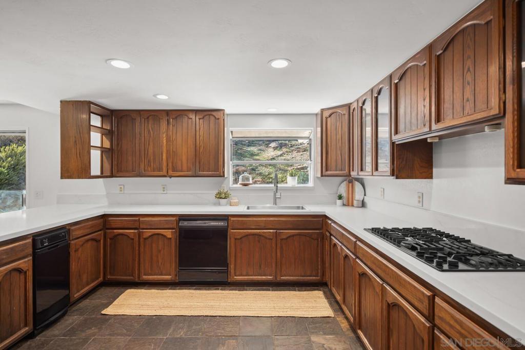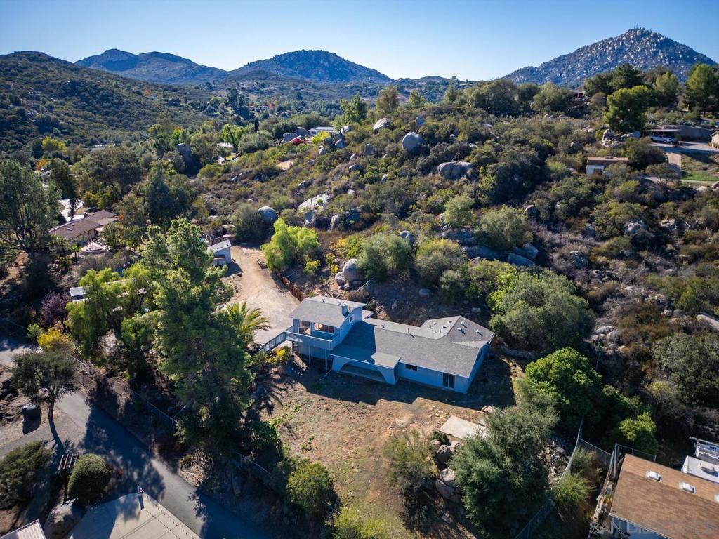 Private 2 acre property located in the coveted West End of Ramona offering sweeping mountain views & an updated 2,350 sq. ft. home featuring 3 beds & 2 baths, plus a versatile upstairs flex room w/ view deck that includes an exterior entrance as well as interior access, with potential for multigenerational living, 4th bedroom, family room, private office, guest retreat, or potential ADU. The property includes an attached 2 car garage w/ covered carport & detached 1,200 sq. ft. workshop/barn/garage plus gated RV parking. An auxiliary building w/ water, electricity, & sink provides even more functional space. Inside, the spacious kitchen features brand new quartz countertops, new sink, breakfast bar, bay window, & walk-in pantry. The living room features a wood burning fireplace & picture window showcasing the mountain views. The dining room has direct access to a patio for dining or entertaining. The primary suite offers a spacious en-suite w/ dual vanities, soaking tub, walk-in shower, makeup vanity, & oversized walk-in closet. Extensive upgrades include brand new roof, owned solar, electric gated entry, new trex decking, newer A/C & water heater, upgraded plumbing, new interior & exterior paint, slate flooring, wood flooring, new carpet, newer garage door motor & track, & a concrete pad w/ electrical for a future hot tub. Plenty of room for animals & a swimming pool. Set on 2 acres featuring stunning mountain views, striking natural boulders, & close proximity to local wineries & horse trails, this property offers the best of Ramona’s relaxed lifestyle & small town charm.