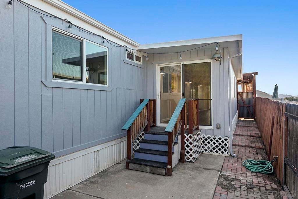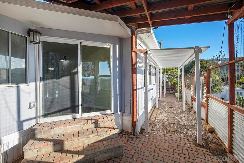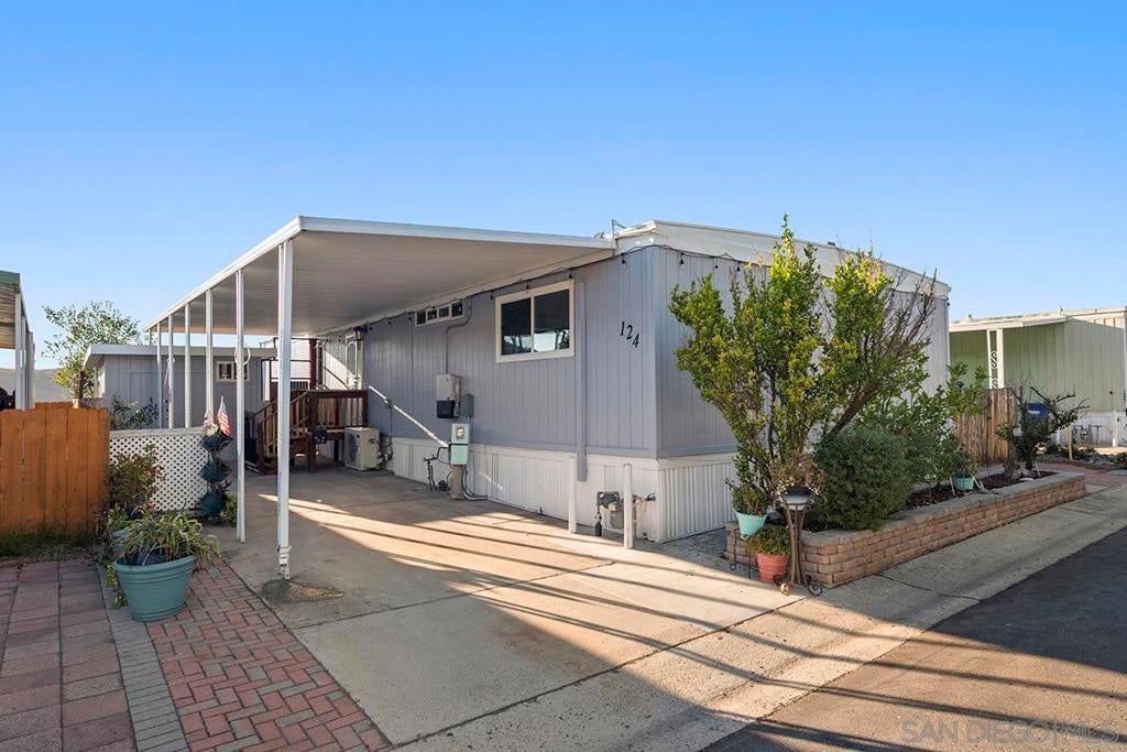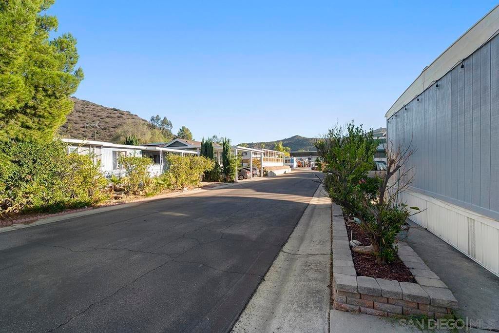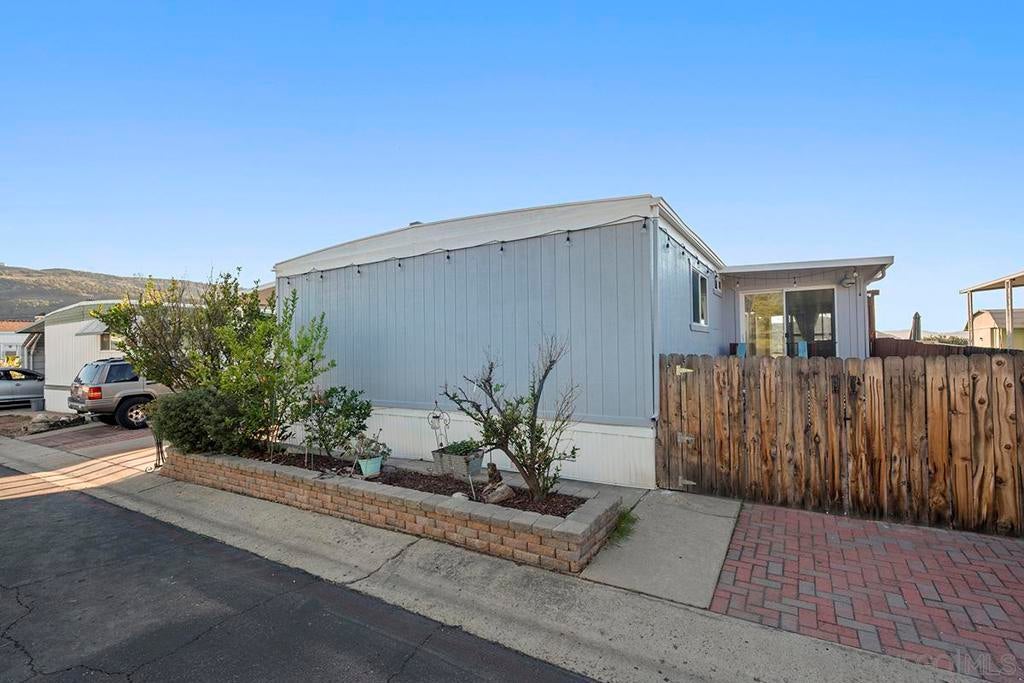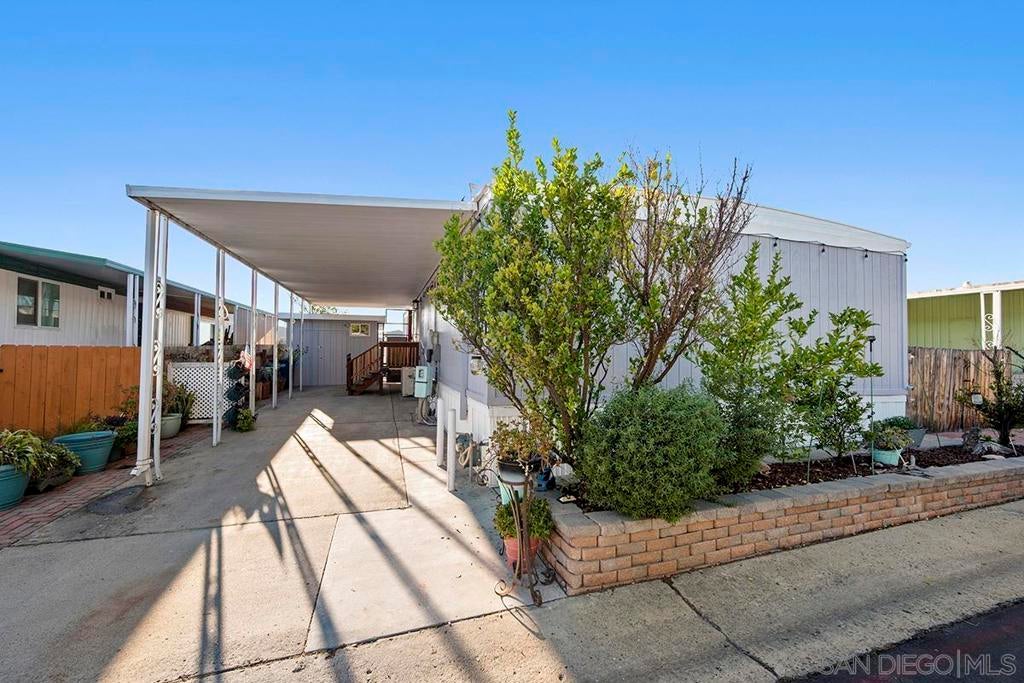 All age co/op family park with reasonable park fees. A GREAT HOUSING OPTION INSTEAD OF A CONDO. Immaculate light and bright double wide mobile home situated in a lovely all age park in El Cajon. This park is a co-op which means that each trailer owner has a share ownership in the land. 2 bedrooms plus an optional room with a large enclosed patio and two baths. The master bedroom has a big walk-in closet and an alcove with room for a nursery or a hobby room. Over 20k spent in remodeling the amazing kitchen with granite counters, newer appliances, newer lighting, and new cabinets. Split unit AC/Heaters Brand new flooring (the subfloors were lifted and replaced prior to the new beautiful floating floor being installed.) Home boasts a spacious private yard with views of city lights. large shed (approx 12x12) for storage. The Solar is financed and can be paid off with the right offer. This unit pays DMV licensing fees of approximately $68 per year instead of traditional property tax on the unit.