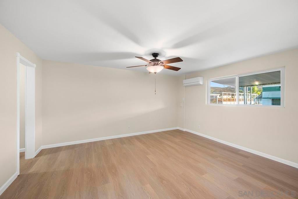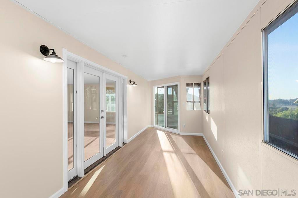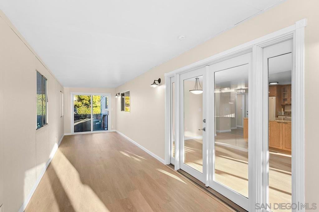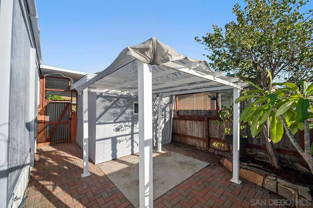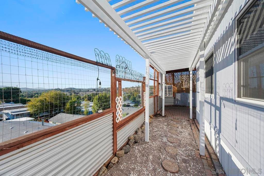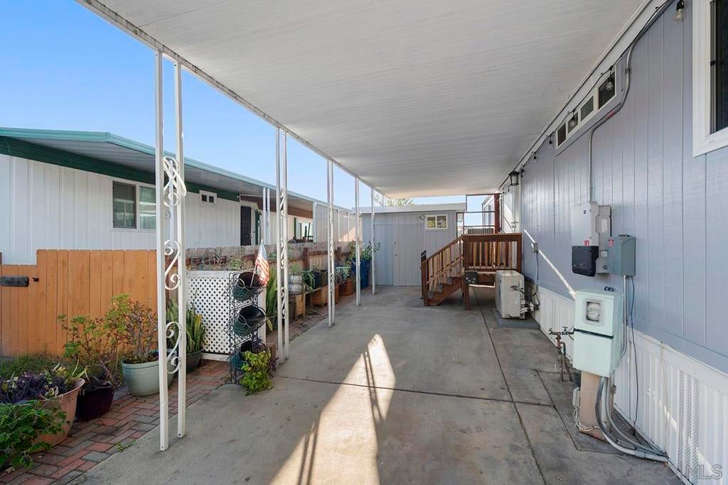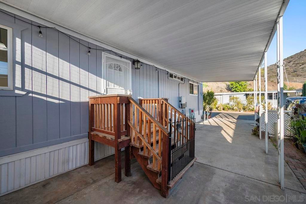 All age co/op family park with reasonable park fees. A GREAT HOUSING OPTION INSTEAD OF A CONDO. Immaculate light and bright double wide mobile home situated in a lovely all age park in El Cajon. This park is a co-op which means that each trailer owner has a share ownership in the land. 2 bedrooms plus an optional room with a large enclosed patio and two baths. The master bedroom has a big walk-in closet and an alcove with room for a nursery or a hobby room. Over 20k spent in remodeling the amazing kitchen with granite counters, newer appliances, newer lighting, and new cabinets. Split unit AC/Heaters Brand new flooring (the subfloors were lifted and replaced prior to the new beautiful floating floor being installed.) Home boasts a spacious private yard with views of city lights. large shed (approx 12x12) for storage. The Solar is financed and can be paid off with the right offer. This unit pays DMV licensing fees of approximately $68 per year instead of traditional property tax on the unit.