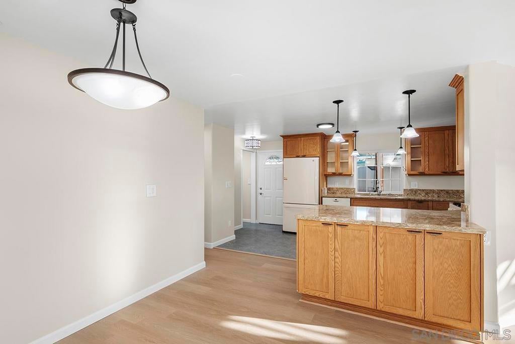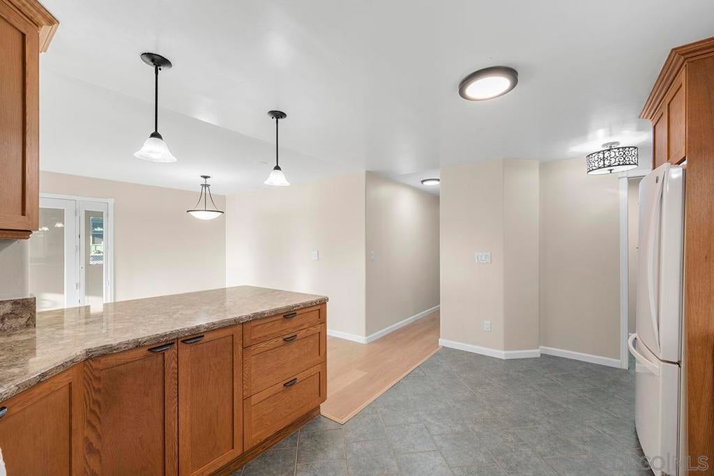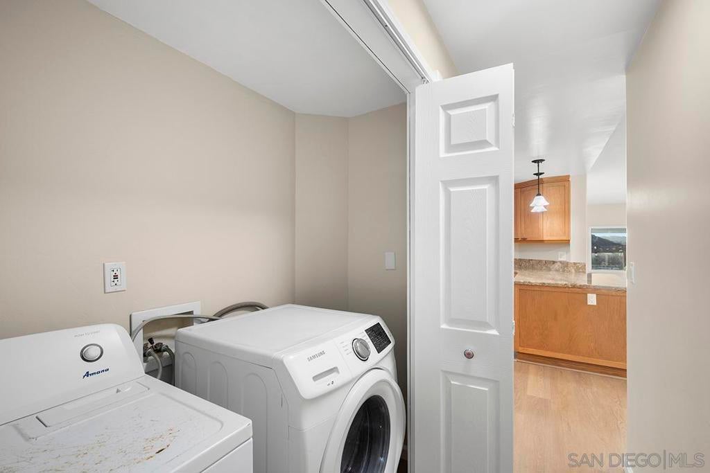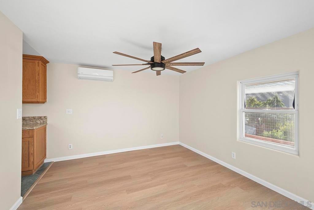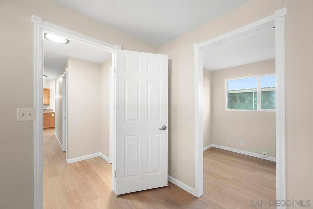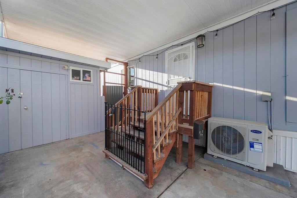 All age co/op family park with reasonable park fees. A GREAT HOUSING OPTION INSTEAD OF A CONDO. Immaculate light and bright double wide mobile home situated in a lovely all age park in El Cajon. This park is a co-op which means that each trailer owner has a share ownership in the land. 2 bedrooms plus an optional room with a large enclosed patio and two baths. The master bedroom has a big walk-in closet and an alcove with room for a nursery or a hobby room. Over 20k spent in remodeling the amazing kitchen with granite counters, newer appliances, newer lighting, and new cabinets. Split unit AC/Heaters Brand new flooring (the subfloors were lifted and replaced prior to the new beautiful floating floor being installed.) Home boasts a spacious private yard with views of city lights. large shed (approx 12x12) for storage. The Solar is financed and can be paid off with the right offer. This unit pays DMV licensing fees of approximately $68 per year instead of traditional property tax on the unit.