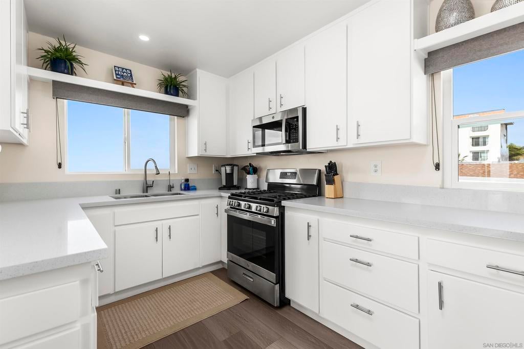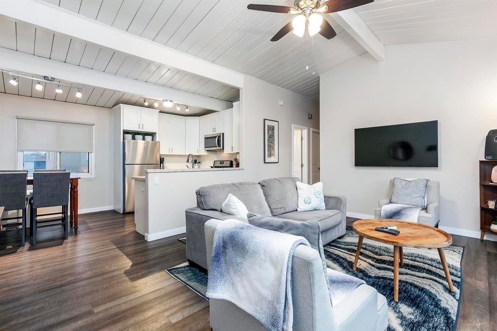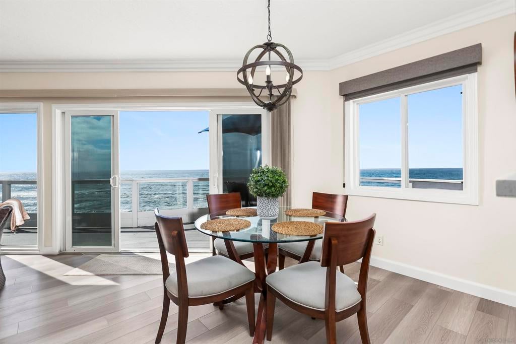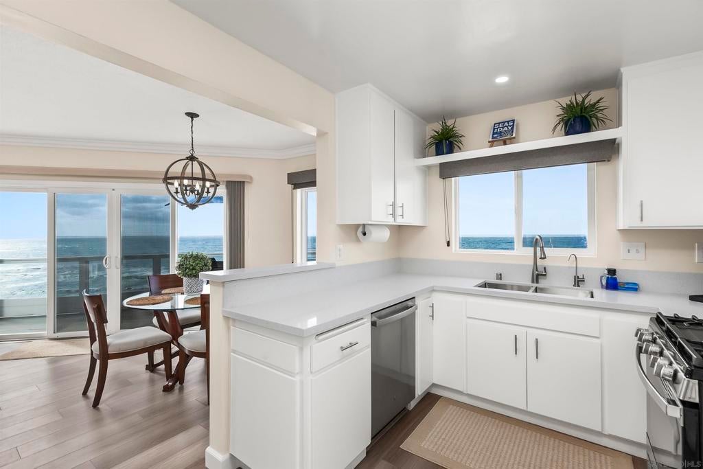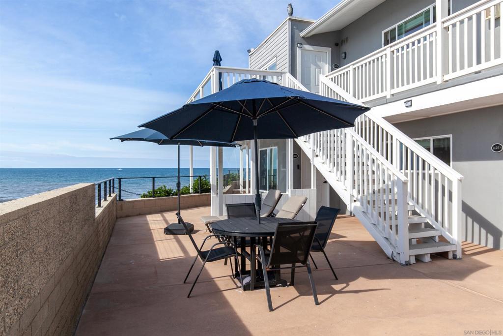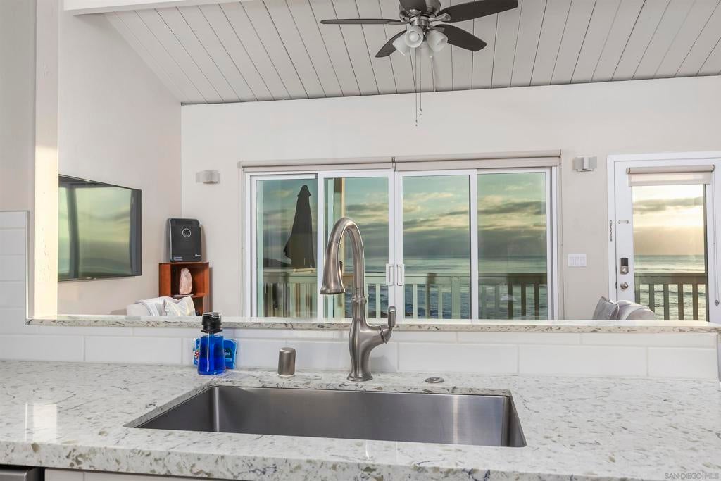 Rare true oceanfront income property in Sunset Cliffs with sweeping ~280° sit-down ocean views, exceptional privacy, and beautifully renovated, turn-key interiors. Includes four upgraded 2BR residences plus two well-finished bonus studio units, offering excellent flexibility and income potential. Renovations from 2020–2025 include quartz counters, stainless appliances, LVP flooring, updated baths, dual-pane windows, and cohesive coastal-modern finishes. Three residences perform strongly as VRBO short-term rentals, while the remaining units are month-to-month long-term rentals with significant upside. Additional highlights: rare 4-car garage, new garage doors, new staircases, and multiple ocean-facing decks/patios. The renovation included major permitted improvements, expanded living areas, and comprehensive upgrades to core systems including HVAC with central air conditioning, plumbing, and electrical, along with a newly rebuilt garage and additional finished living space above. Multiple outdoor decks were created to maximize panoramic views, including decks off the primary suite, living area, and the library/bedroom suite above the garage. The kitchen is appointed with a full Thermador suite including refrigerator/freezer columns, wine refrigerator, double ovens, and a 6-burner range with griddle and pot filler, plus a large granite waterfall island with seating for five. Decking is Trex with updated iron railings, and the patio is plumbed for gas for a future fire feature. The primary suite features Italian Carrara marble finishes, dual sinks, separate water closet, walk-in closet and additional closet storage, and the primary bath and powder room are equipped with bidets. The lower level functions as a true guest suite with a spacious family room, full kitchenette, separate entry, laundry, large closets, plus a private bedroom and full bath.