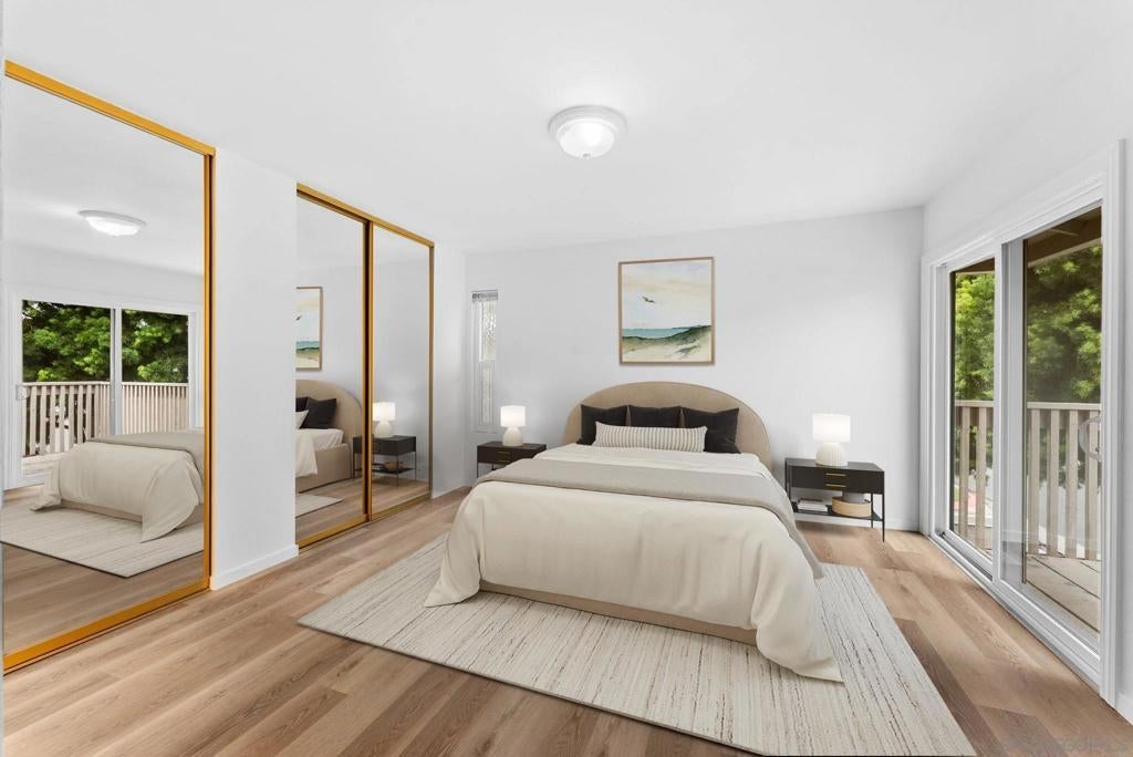Bright, airy, and beautifully updated — this spacious “Matthews” plan condo in Playmor Terrace West offers comfort, style, and convenience in one of San Diego’s most desirable locations. The inviting main level welcomes you with new wooden plank flooring that enhances the open layout and adds warmth throughout. The large living and dining areas are filled with natural light and centered around a charming fireplace, creating a perfect setting for both relaxation and entertaining. The updated kitchen features sleek granite countertops, stainless steel appliances, ample cabinet space, and a breakfast bar that opens to the dining area for seamless flow. French doors lead to a private patio—an ideal spot for al fresco dining or unwinding under the stars. A full-size laundry room and convenient guest powder bath complete the first floor. Upstairs, the expansive primary suite feels like a private retreat, featuring generous closet space and access to a large balcony that invites fresh breezes and morning sunlight. Two additional bedrooms and two well-appointed bathrooms offer versatility for guests, a home office, or family needs. Additional highlights include dual-pane windows throughout, a large skylight that floods the stairway with natural light, and two private parking spots—one covered carport and one uncovered space conveniently located near the home. Residents of Playmor Terrace West enjoy a well-maintained community with two resort-style pools, lush landscaping, and a peaceful neighborhood atmosphere. Close to UCSD, dining, major freeways, parks, and much more!