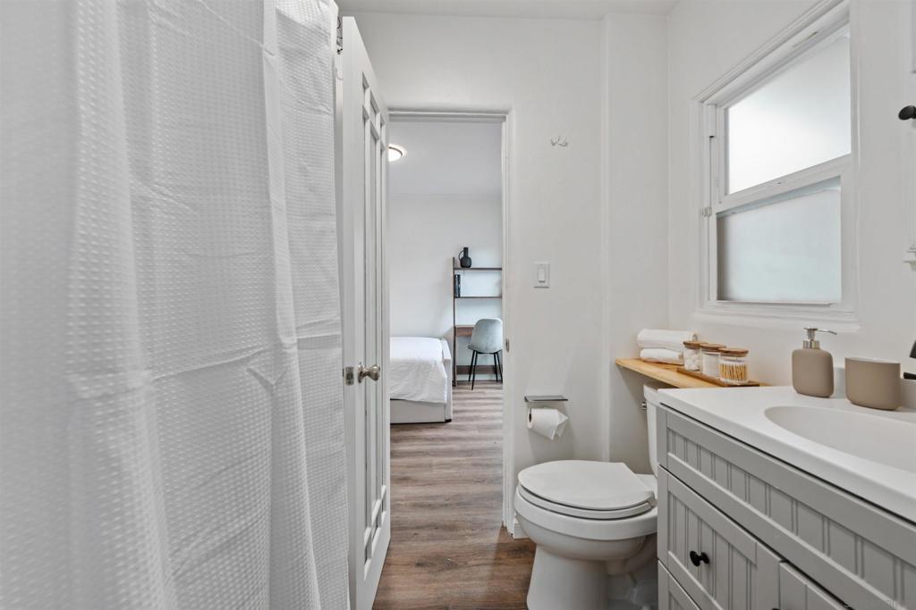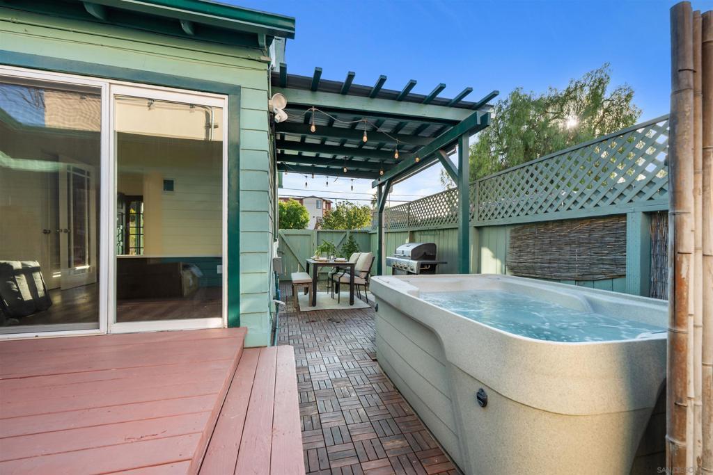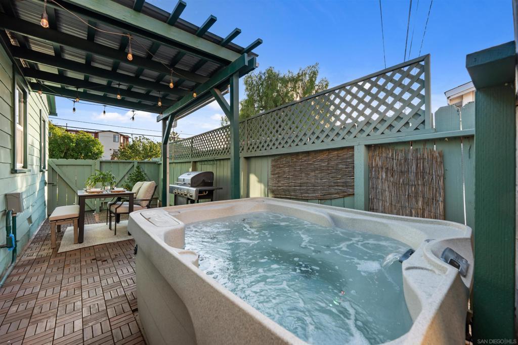 Short term rental - Charming cottage with modern touches one street from Adams! This fully-fenced gem bursting with charm and character has been beautifully maintained and offers cozy comfort, thoughtful updates, and incredible curb appeal. Step onto the inviting front porch, surrounded by vibrant flowers and a sunny horizontal, wood fence that adds a playful touch to the home’s charming exterior. Inside, you’re welcomed by a bright and airy living room featuring a warm vinyl plank flooring and neutral wall tones to create a relaxed and welcoming atmosphere throughout. The living space flows seamlessly into a bonus room. Large windows bathe the interior in natural light,while thoughtful updates like recessed lighting and wood blinds add functionality and style. Tucked away from the main living areas and other bedrooms, this oversized primary suite offers the ultimate in privacy and tranquility. Step into the backyard for a yard with storybook charm and relaxing spa. Located in a sought-after neighborhood, just minutes from the beach, shops, dining, and freeway access, this home offers the perfect blend of vintage charm and modern convenience.