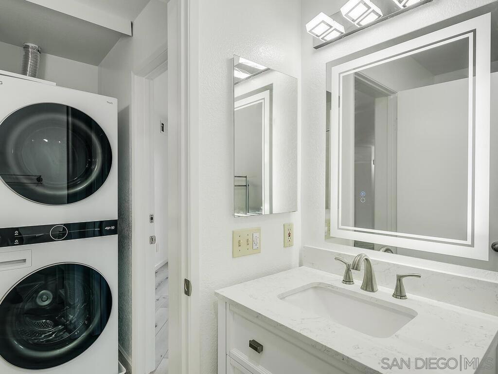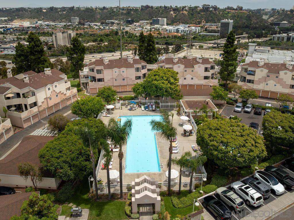 Upgraded Ground-Floor Unit with Stunning Views. Set above Mission Valley in the sought-after City Scene community, this spacious 3-bedroom, 2-bath ground-level unit offers the perfect blend of style, comfort, and convenience. With 1,271 sq ft of living space and panoramic views, this home stands out for both its location and thoughtful upgrades. The unit includes a total of three parking spaces: two in a private tandem garage and one additional non-garage space with a permit/decal. Inside, you’ll find a long list of improvements designed to enhance daily living. Luxury vinyl plank flooring adds a clean, modern touch while the interior paint creates a bright and inviting feel throughout. The kitchen has been upgraded with marble countertops and a new single-bowl stainless steel sink with a built-in cutting board—great for both cooking and entertaining. The remodeled primary bathroom features dual sink vanities and a sleek new shower enclosure, offering a private retreat at the end of the day. Additional updates include a newer water heater. Step outside to your private patio to enjoy open views and breezes, or take advantage of the resort-style amenities, including a large pool, spa, and fitness center. Perfectly situated in central San Diego, this unit offers quick access to everything from Fashion Valley Mall and Snapdragon Stadium to USD, SDSU, Mesa College, downtown, beaches, hospitals, and the airport. The City Scene community features a range of amenities including a pool, spa, fitness center, and BBQ area.