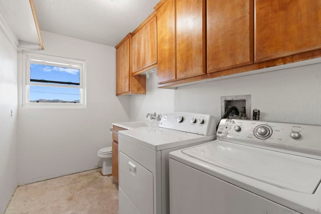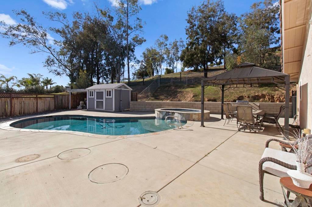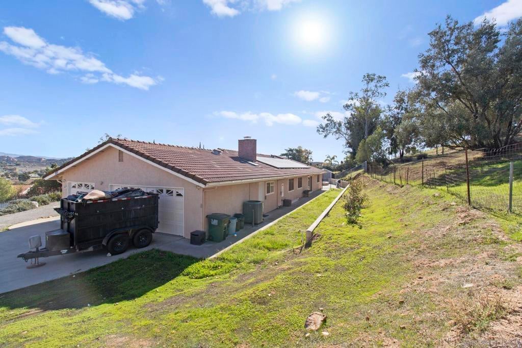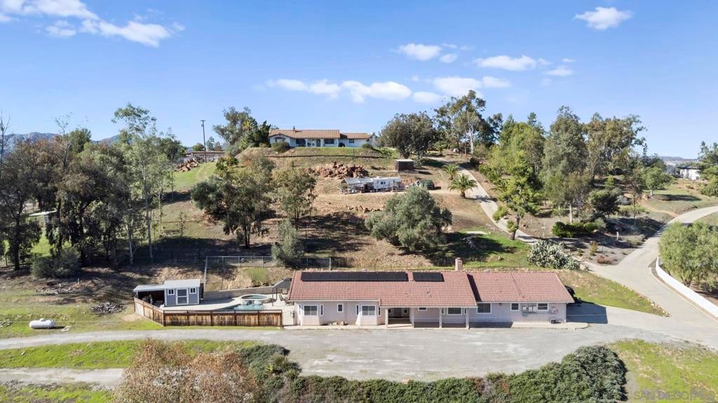 Beautiful Ramona property with sweeping views and a sparkling private in-ground pool. This 3 bed, 2 bath home also includes an optional 4th bedroom or den, offering flexible space for family, work, or guests. The generously sized 1.2-acre lot provides peace, and room to grow. The spacious garage includes an unfinished laundry room with a half bath ready for completion, adding even more potential. Outside, you’ll find a convenient pool shed, also with an unfinished half bath and outdoor shower, perfect for future upgrades. A quiet setting with incredible usability, this property is ideal for families seeking space, comfort, and opportunity.