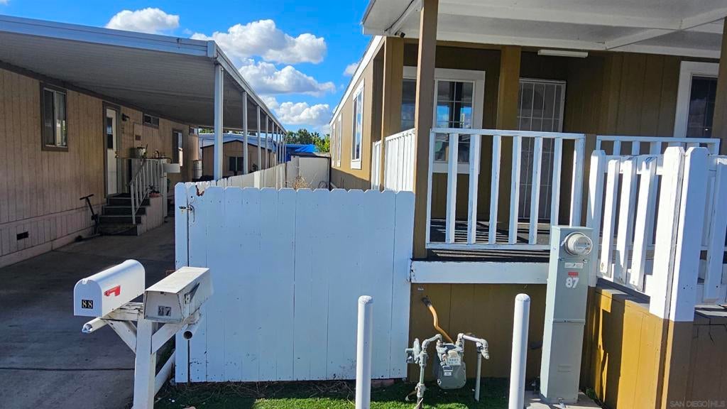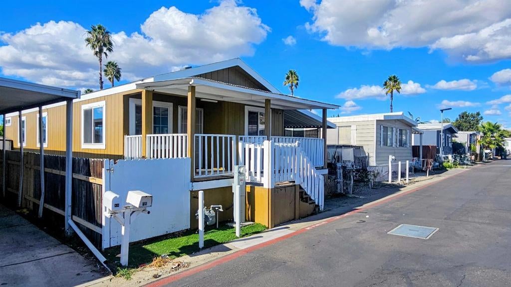?Key Features: ?Exterior Appeal: The home features appealing yellow siding with white trim and a covered front porch/deck with white railings, perfect for enjoying the outdoors. ?Outdoor Living: A long, covered carport provides shaded parking and extends to a private, fenced side yard with artificial turf, ideal for outdoor entertaining or relaxation. The space is covered with sunshade fabric for added protection and privacy, and currently accommodates a couple of grills. ?Interior Highlights: ?Open Concept: Step inside to a spacious living area featuring vaulted ceilings, a bright entryway with a door featuring a decorative half-moon window, and a blend of flooring, including dark wood-look tile in the kitchen/dining area and carpet in the living room. ?Kitchen/Dining: The kitchen area, visible from the living room, has dark cabinetry and is separated from the living space by a partial wall. ?Hallway: A central hallway with dark wood-look flooring connects the main living area to the bedrooms and utility space. ?Laundry Area: Includes a dedicated space for a full-size washer and dryer with overhead cabinetry for storage. ?Bedroom: One of the bedrooms is comfortably sized and currently decorated in a gaming/anime theme, featuring plush carpet and a closet. ?This home offers a great combination of indoor comfort and dedicated outdoor space in a community setting. Serial Number CAHKO120846007991A CAHK0120846007991B
