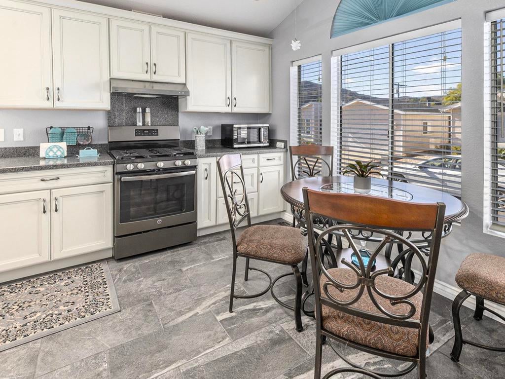 Come and see this beautifully fully remodeled home offering over 1400 sq. ft. of living space! This charming manufactured home features a two-car garage and a fully fenced backyard, and it truly shows like a model. From the moment you enter the wide hallway with cathedral ceilings and elegant lighting, you’ll feel right at home. The fully upgraded kitchen is both charming and functional, featuring soft-close cabinetry, custom slide-outs, stainless steel appliances, and a delightful breakfast nook. (refrigerator included)., and beautiful countertops. This home combines beauty with comfort—featuring engineered hardwood floors, remodeled bathrooms, ceiling fans in every room, and heating and air conditioning. Custom double doors from the living room and primary suite open onto a spacious patio where you can relax and enjoy your morning coffee. The backyard is fully fenced and perfect for gardening or outdoor fun activities. The spacious master bedroom includes a walk-in close! The community offers everything you could wish for: a clubhouse with a movie area and pool tables, a remodeled event kitchen, a refreshing pool with a kiddie pool and jacuzzi, a gym, playground, and available RV storage (subject to availability). This is a Family Park! Truly a home that checks every box! Come and see this beautifully fully remodeled home offering over 1,500 sq. ft. of living space! This charming manufactured home features a two-car garage and a fully fenced backyard, and it truly shows like a model. As you enter through the front door, you’re greeted by a wide, open hallway with cathedral ceilings and a stunning hanging light fixture. To your right is the completely remodeled kitchen, featuring soft-close cabinets, a custom spice rack, pantry slide-outs, and an abundance of storage for all your appliances. The kitchen includes all stainless steel appliances, including the refrigerator, and offers a cozy nook for a small table, while the adjacent dining area easily accommodates a larger dining set. The home has been tastefully decorated and features beautiful engineered hardwood flooring throughout. There are three bedrooms and two fully remodeled bathrooms with updated countertops. All bedrooms—and the living room—are equipped with ceiling fans for added comfort. The living room and master bedroom both feature custom double doors leading to the outdoor patio. The living room and master bedroom both feature custom double doors leading to the outdoor patio. The spacious master bedroom includes a walk-in closet, and the large patio is the perfect place to enjoy your morning coffee. The backyard offers plenty of space for gardening or outdoor activities. The property also features heating and air conditioning. The Community clubhouse offers fantastic amenities, including a movie-watching area, a pool table for fun with family and friends, and a large remodeled kitchen available to rent for parties and events (with deposits returned the same week). In the summer, enjoy the refreshing pool area, complete with a kiddie pool, jacuzzi, and ping-pong table. Additional amenities include a gym, a children’s playground, and RV storage (subject to availability)