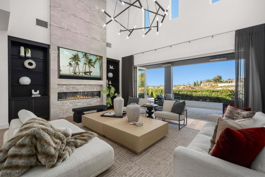 ~ Incredible Opportunity!~ Set above the Rancho Santa Fe Farms Golf Course, this Like-New & custom modern estate offers rare privacy, sophistication, and seamless indoor/outdoor living. Panoramic Views across six golf holes, the estate is filled with natural light and designed for five-star resort-level comfort. A wall of LaCantina-style bifold doors opens the vaulted Great Room to a covered outdoor living area, private pool/spa, fire pit & Summer kitchen, creating a seamless entertaining extension of the home. The gourmet kitchen features custom cabinetry, high-end Dacor appliances, Miele dual dishwashers and built-in coffee maker, walk-in pantry, nearby outdoor vegetable/fruit garden, and interior designer lighting chosen with a curator’s eye. Control4 technology, surround sound audio, Owned SOLAR, custom window treatments, and beautiful custom built-ins. The main-floor primary suite includes a walk-in closet and a spa-style bath appointed with refined finishes, offering a quiet retreat. Outdoor living is elevated by a German-engineered Algarve louvered roof with wind-rated shades, built-in heaters, full landscape lighting, irrigation, artificial turf, BBQ, and a beautiful water feature, all oriented toward the sweeping golf course views in the backdrop. Now this is a true modern sanctuary within The Farms, and one of its most rare and complete turnkey offerings.