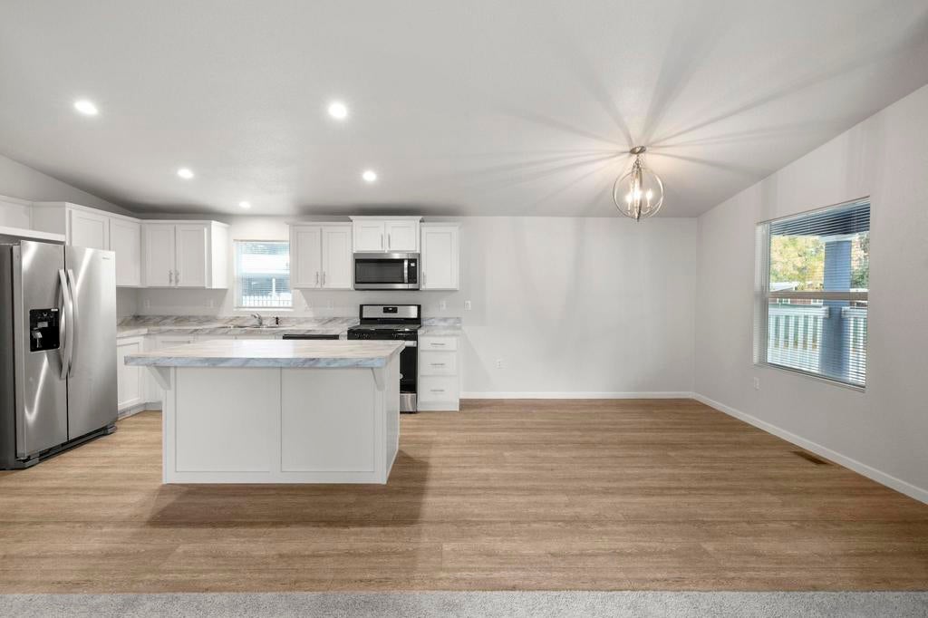 This newly built 3-bedroom, 2-bath manufactured home in the highly desired family park of Valley of Enchantment offers the perfect mix of modern comfort and mountain charm. Built with durable 2x4 construction and a 60 lb. roof load for snow, it provides lasting quality and peace of mind. The bright, open floor plan features vinyl sheet flooring, cozy carpeted bedrooms, and a spacious kitchen with new appliances. The main bedroom includes a large walk-in closet, creating the ideal retreat. With its stylish finishes and inviting design, this home is a fantastic starter for families or first-time buyers seeking quality and value. Space rent is $1,080 per month.