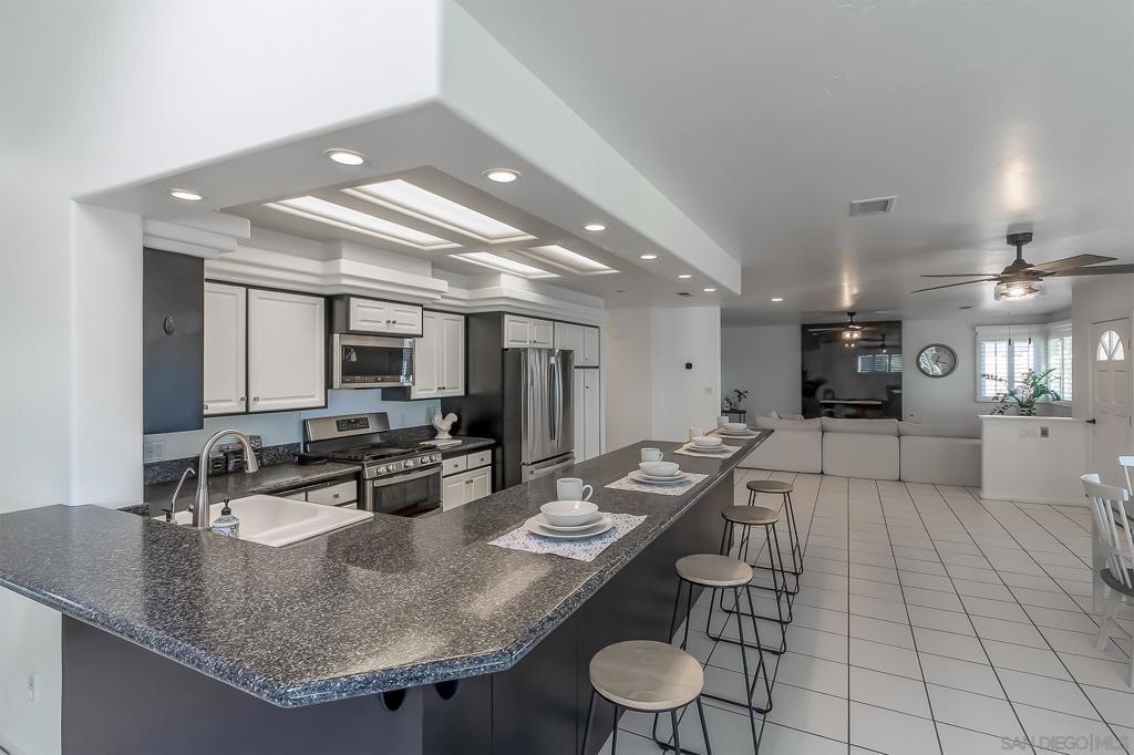 Beautiful & Serene Single-Level MT HELIX 3BR/2BA Home Perched on a Cul-de-Sac. Sit Atop the Terraced Front Yard & Sip Your Favorite Beverage While Enjoying the Peaceful, Sweeping Mountain & Neighborhood VIEWS. Bright Open-Concept Layout with Formal Living Room & Cozy Fireplace, Family & Dining Areas. Primary Suite with En-Suite Bath & French Door Patio Access. Backyard Offers Multiple Patios for Outdoor Living/Entertaining. SEE SUPPLEMENT BELOW SEE 3D Tour for MATTERPORT Video Upgrades: Dual-Pane Windows, French Doors, Bedroom Carpeting, Appliances, Kitchen Reverse Osmosis Water Spigot, Ceiling Fans & Smart Thermostat. Attached 2-car Garage with Abundant Storage. Convenient Location Near Schools, Dining, Shopping & Freeway Access.