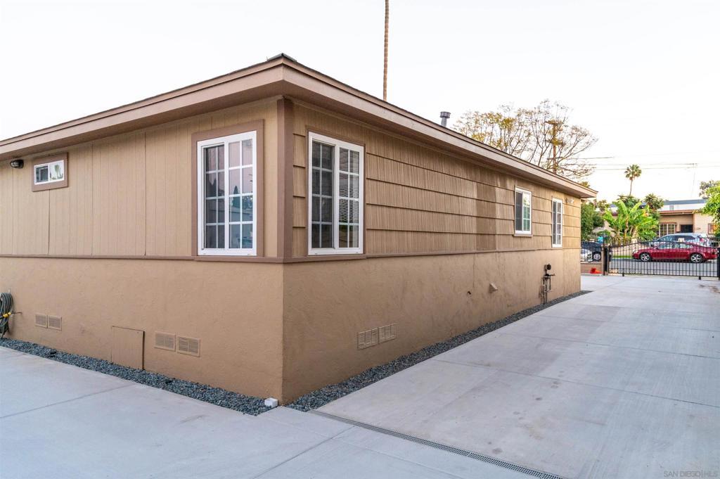 Welcome home to this bright, newly renovated 3-bedroom, 1-bath residence set on a spacious lot designed for comfort, privacy, and convenience. Sliding driveway gate, dedicated parking, and two mature lemon trees add a true touch of California living. Inside, French-style white mullioned windows fill the home with abundant natural light, creating an airy, uplifting atmosphere. New combination ceiling fan light fixtures and sleek mini-split A/C units, ensure year-round comfort. The open-concept layout features a renovated kitchen flowing seamlessly into the dining and living areas. Highlights include all-new wood cabinetry, quartz countertops, soft-close drawers and hinges, a white gas range, stainless steel microwave, and a white refrigerator. A deep single-basin stainless steel sink with a modern pull-down faucet completes this clean, functional design. New 18” porcelain tile flooring in a soft sand tone runs throughout the home, complemented by recessed lighting in the living and dining spaces. Each bedroom offers mirrored closet doors. Fresh interior and exterior paint along with convenient in-house washer and dryer hookups make this home truly move-in ready. The expansive lot is shared with two rear units, with dedicated parking exclusively for the main house. Tenants are responsible for utilities. No smoking and no pets. Ideally located in central National City near Plaza Bonita, parks, schools, dining, and quick access to the 805 and I-5, and downtown San Diego. Start the new year in this light-filled, thoughtfully renovated home. Each of the three bedrooms offers generous storage with mirrored closet doors, and the home includes convenient in-house washer and dryer hookups. The interior and exterior have been freshly painted, making this home truly move-in ready. The expansive outdoor lot is shared with two rear units and offers ample space, with dedicated parking reserved exclusively for the main house on the right side. Tenants are responsible for all utilities and maintaining a smoke-free and pet-free environment. Ideally located in central National City, this home is just minutes from Plaza Bonita, parks, schools, dining, and easy access to the 805 and I-5 freeways, with downtown San Diego only a short drive away. Your search ends here. This thoughtfully renovated, light-filled home is ready to welcome you into the new year!