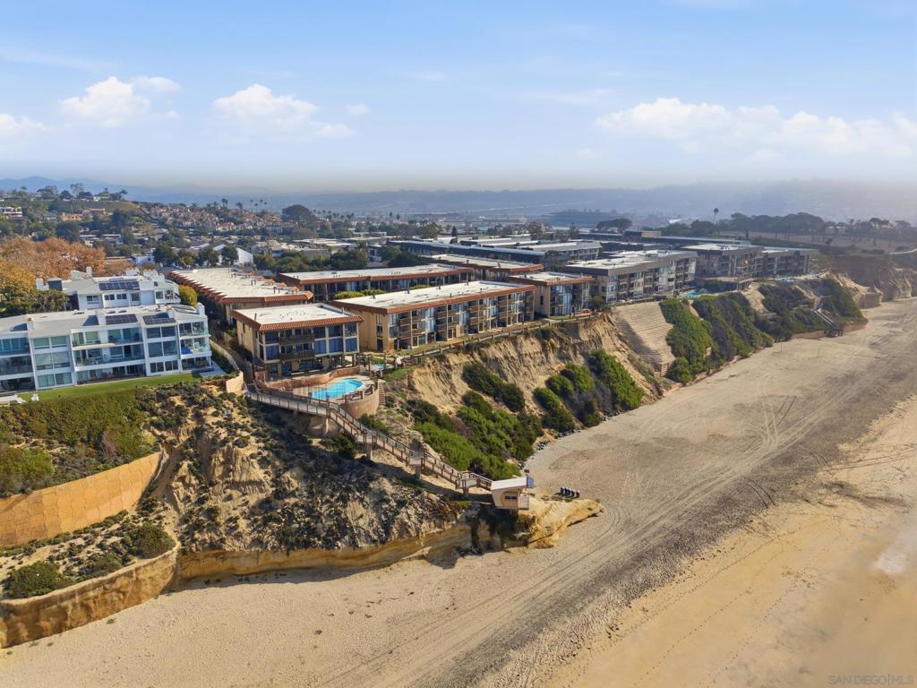 Partial Ocean views in soon to be remodeled top-floor, turnkey, 1 bed+1 bath condo (currently under renovation). Be the FIRST to enjoy this gem of a property & brand new sleek design. This condo represents coastal living at its best in Solana Beach’s highly sought after gated Del Mar Shores Terrace Community. This 3 acre complex sits atop the oceanfront bluffs of Solana Beach offering resort- style living & has beautifully manicured walking paths throughout the community to along the coast, finishing w/private steps the lead you right down the bluff to the beach. You can leave your condo & have your toes in the sand in minutes! This bright & open condo was thoughtfully remodeled to modernize & create space for comfort. While it’s design is impeccable, it does not overshadow the partial ocean views & beach essence. The resident will be able to enjoy ocean breezes, bright natural light, and partial ocean views from their second story ocean facing living room and private patio. Condo also comes with 2 dedicated parking spaces in the community’s gated garage. Residents will enjoy resort-style amenities including direct beach access via private stairs, an ocean-view gated pool and spa, newly renovated clubhouse, sauna, community BBQ, laundry facilities & secure gated covered parking. In addition to being just steps from the beach & crashing waves, this community is nestled close to everything Solana Beach/Del Mar has to offer! Walkable to train station, Del Mar Fairgrounds, Brigantine, Rustic Root, Lana, Rare Society, coffee shops Cedros Design District, Belly Up+ more!!!