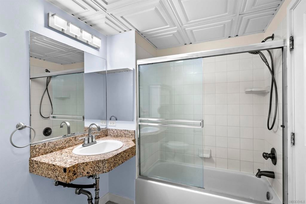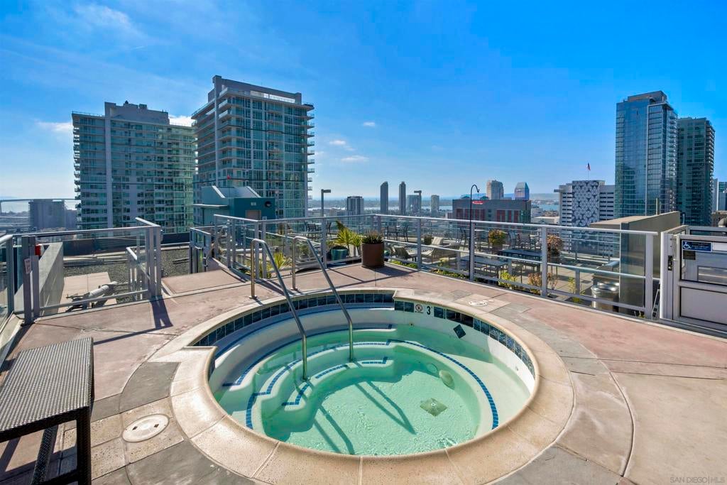 Amazing opportunity for a first-time buyer or investor! This move-in-ready third-floor residence in the iconic Smart Corner building offers a stylish Downtown lifestyle. Featuring wood-textured ceramic tile flooring throughout, exposed cement accents for a modern loft-like feel, and a contemporary ceiling fan that anchors the living space. Enjoy seamless indoor-outdoor living from the spacious private balcony that is perfect for relaxing or entertaining. The upgraded kitchen showcases granite countertops, designer tile backsplash, pendant lighting, and an eat-at counter ideal for casual dining. Includes a dedicated parking space and a rare assumable VA loan at 3.25%—an exceptional value in today’s market. Smart Corner is an all-encompassing hub of work, play, shop, and live! It is conveniently located near the 163 freeway, I-5, Highway 94, Petco Park, the Gaslamp Quarter, San Diego City College, and Balboa Park. A trolley station located below the development ensures Smart Corner has all an urban dweller could want. Amenities include 20th floor roof-top sun deck with forever views of the city skyline, 10-person hot tub, barbecue area, wet bar, 2nd floor Fitness Center, PLUS on-site management, and security.