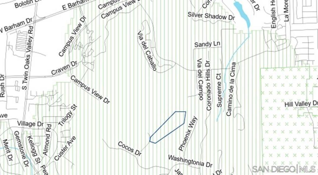 An exceptional 11.83-acre opportunity for builders or those seeking to create a custom estate, offering sweeping panoramic views of the ocean, city lights, valleys, and surrounding mountain ranges—truly a must-see to appreciate. The lot sits on a very quiet, peaceful private road within Coronado Hills community, surrounded by luxury custom homes and offering outstanding privacy with endless possibilities. This expansive property provides ample usable land. A water main is located on the property through the Vallecitos Water District, with electricity and sewer available nearby. Coronado Hills delivers a rural, serene setting while remaining conveniently close to shopping, dining, and everyday amenities. Just minutes from freeway access, the property is located in San Marcos—considered the hub of North County—and within a highly sought-after school district. With breathtaking views, abundant space, and a premier gated location, this is a rare opportunity to build your vision in one of the area's most desirable hillside communities.
