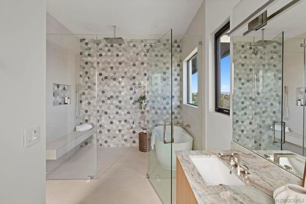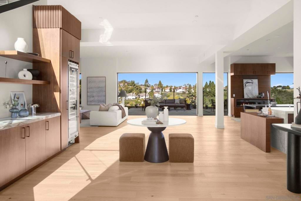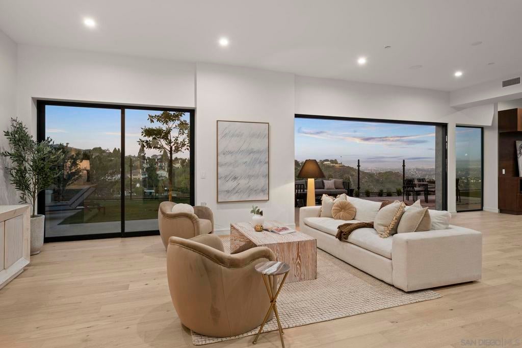 A striking ground-up new construction, this soft contemporary residence blends refined design with exceptional craftsmanship on an expansive 27,442-square-foot lot, tucked away on a quiet cul-de-sac. The home captures big, open views and seamless indoor-outdoor living. At the heart of the home is a gourmet kitchen outfitted with a full suite of Thermador appliances, including oven, refrigerator, wine wall, dishwasher, and microwave. High-end finishes are showcased throughout, from real walnut interior doors to premium Fleetwood windows and sliding doors that flood the interiors with natural light and frame the surrounding views. Designed for comfort and efficiency, the residence features four separate HVAC zones. Outdoor living is equally impressive, with a resort-style pool, professionally landscaped grounds, and expansive grass areas ideal for both entertaining and everyday enjoyment. A rare opportunity to own a brand-new, meticulously crafted contemporary home offering privacy, scale, and elevated finishes in a premier cul-de-sac setting.