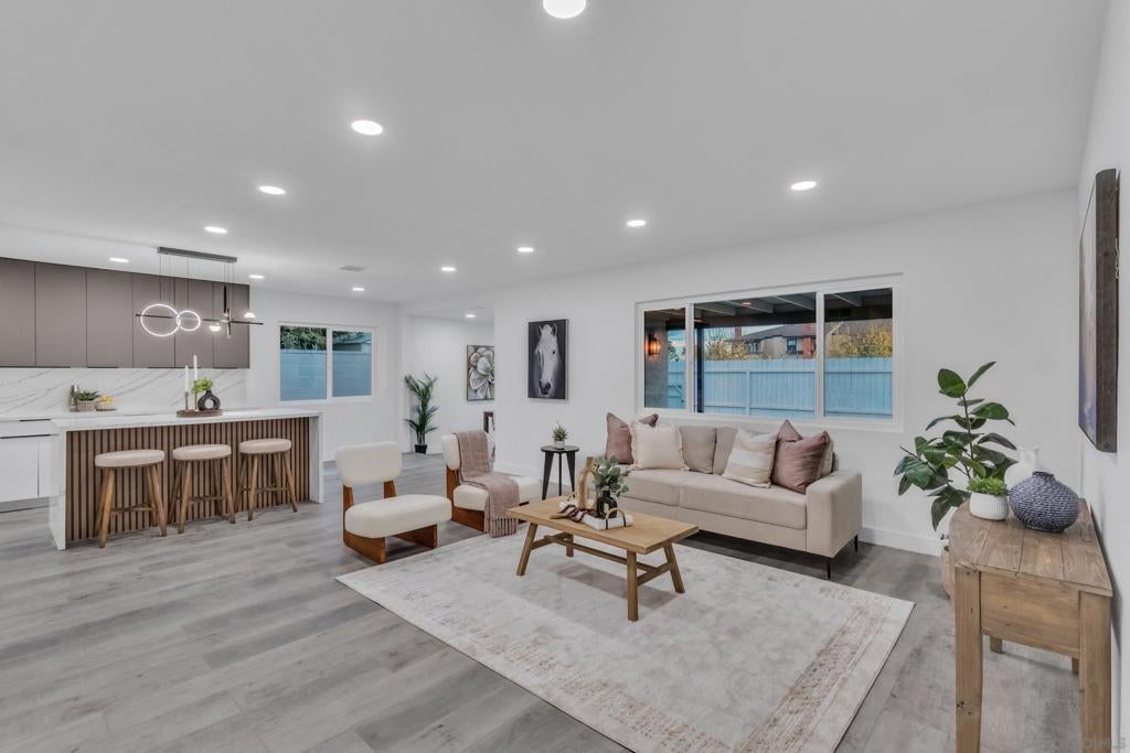 Welcome to_9253 Les Rd, Santee A beautiful fully remodeled home 3 Bedrooms 2 Bathrooms located in a desirable Santee neighborhood! The spacious primary room features a Huge Walk-in closet, brand New Roofing, New windows, New sliding doors, New flooring throughout, and a completely renovated kitchen with modern finishes. The Bathrooms have been fully updated, new water heater, Fresh interior and exterior paint, all New lights throughout the house, Step outside to a nice private patio, perfect for relaxing or entertaining, Low maintenance turf landscaping in the front and backyard. Located near shopping, Dining, Parks, School, And easy access to CA-52. Move-in ready and not to be missed!