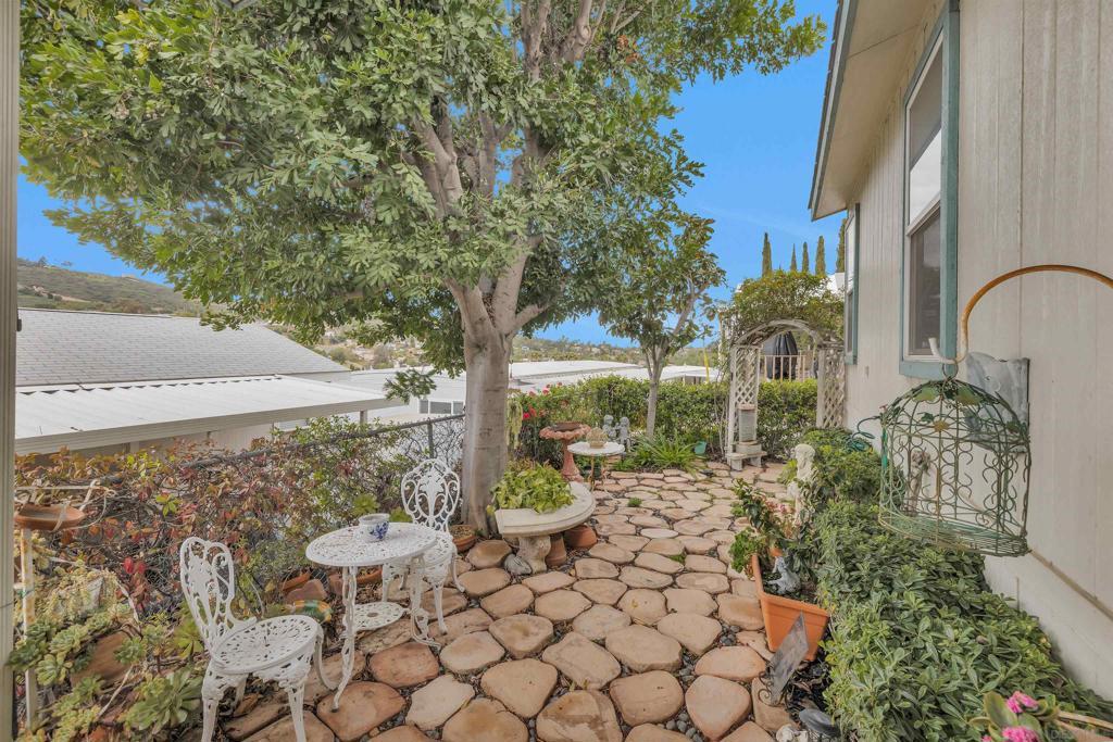 Beautiful 2 BR, 2 BA + Den Manufactured Home — 1,500 sq. ft. in a Fantastic All-Age Community. Perched at the top of a hill, this charming home welcomes you with a spacious front deck and a lush, private yard that feels like your own secret garden. Inside, vaulted ceilings run throughout, filling the home with natural light. The generous living room features an entire wall of windows showcasing lovely views. Enjoy a formal dining room and a large, well-appointed kitchen with a small island and a 5-burner cooktop — perfect for cooking and entertaining. The primary bedroom is impressively spacious with a walk-in closet. The primary bathroom offers a luxurious soaking tub, separate step-in shower, and abundant storage. With an additional den for office or hobby space, this home truly checks all the boxes.