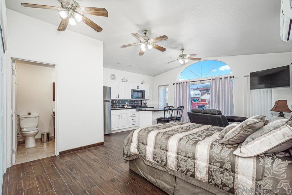 This studio is a furnished ADU Conveniently located in San Diego. Newly built and fully equipped with a large full bathroom, the kitchen is brand new, remodeled with new countertops, cabinets, and stainless steel appliances. New A/C, and tankless water heater. Large kitchen with island and barstools, private side patio with a small front porch. Available for rent short-term and long-term rental. Amenities include a gas stove, stainless steel refrigerator, microwave, toaster oven, storage space, and private side yard. This home is centrally located in San Diego near the 94, 54 & 125 freeways. Utilities: water, gas, electricity, and internet are included in the price of rent. UNIT AMENITIES Air conditioner, Climate control, Controlled access, Furnished, Kitchen island, Microwave, Mirrors, Pet friendly, Private patio, Stove and oven, Tile floors, Vaulted ceiling, Window coverings