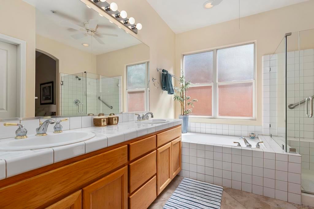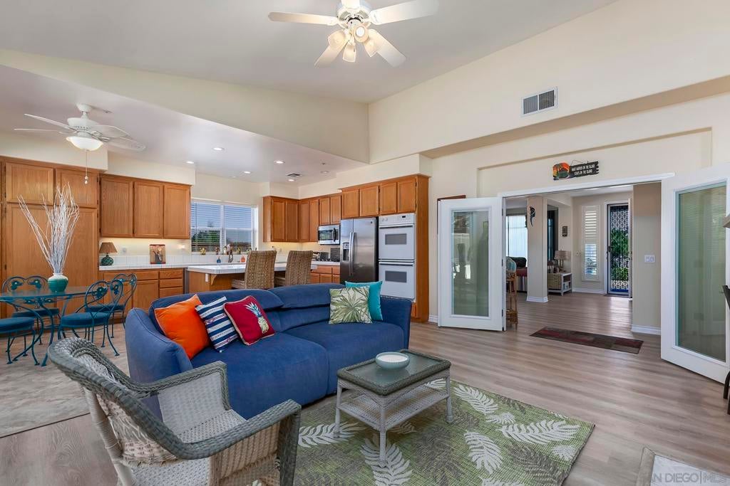 Cul-de-sac location just minutes to 76 & 78 freeways & Beautiful Beaches! Spacious single level home showcases Panoramic Views of Tropical Scenery and Beautiful Green Hills. Open floor plan w. vaulted ceilings & natural light fills this 4BR-3Bath home (4th is den, easily converts). French doors allow easy separation of the Kitchen & Living Room while offering a Great Room & Fireplace. Newer laminate & tile flooring throughout. Wide hallways lead to a large primary suite with its own entry and screened patio (could become guest home/ADU) spacious bath with dual sinks & soaking tub. Roomy 3-car garage with epoxy floors, cabinet/storage galore. *See Supplement. Newly painted exterior, new water heater, central AC. Multiple car driveway (RV, Boat) parking. Colorful, succulent landscaping. Newer fencing around 3/4 of the property (which expands beyond the fencing) two large private gates (north and south), multiple expansive outdoor areas, screened in patio areas great for pets/kids. Just a few minutes to shopping, great restaurants including famed Texas BBQ, beautiful neighborhood parks, acclaimed schools, nearby Antique Gas and Steam Engine Museum from early 1900's & Some of California's Most Beautiful Beaches: Oceanside and Carlsbad.
