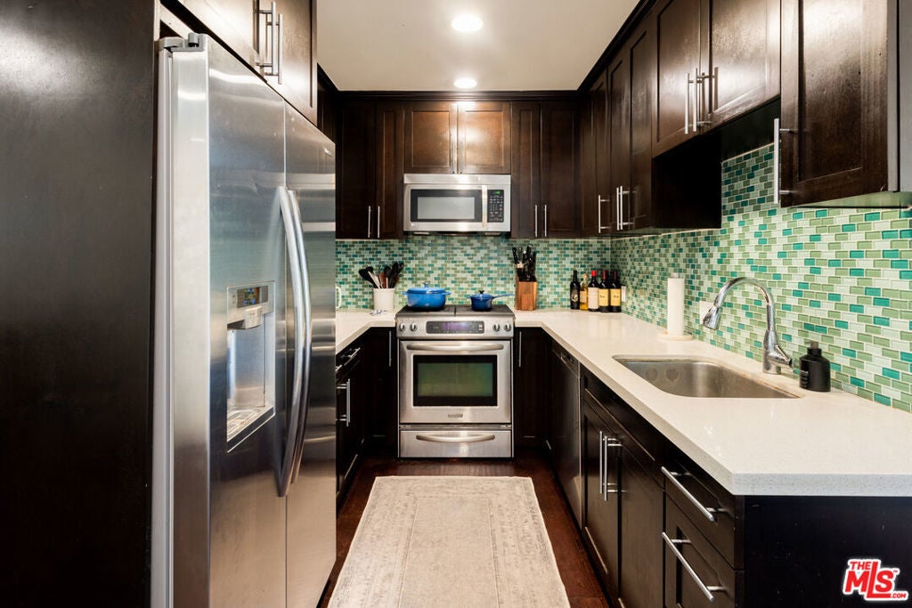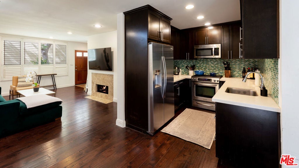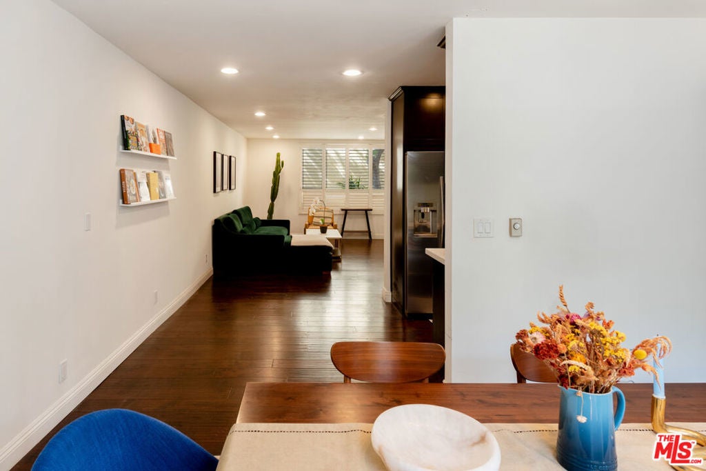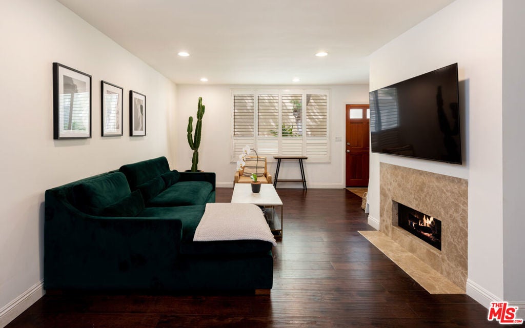 Welcome to this beautifully remodeled two-story townhouse-style condo, offering 2 bedrooms, 3 bathrooms, and 1,280 square feet of luxurious living space. The main floor boasts an open-concept layout that seamlessly connects the living, kitchen, and dining areas to a private patio, creating an ideal flow for entertaining and everyday living. Modern elegance shines throughout, featuring high-end finishes like hardwood floors, custom cabinetry, and a kitchen with premium stainless steel appliances, Caesarstone countertops, and a chic tile backsplash.Upstairs, the two spacious bedrooms and bathrooms offer ample comfort and privacy, with large windows that fill the home with natural light all day.Additional conveniences include an in-unit stackable washer/dryer, ample storage options in both the home and garage, and gated parking with a designated space in the garage. Enjoy direct access from the garage to a gated courtyard, providing easy entry into the home. Situated in a quiet building with only 14 units, this condo provides a serene retreat in one of Santa Monica's most desirable areas. Just moments from Montana Avenue's boutique shops, restaurants, local parks, excellent schools, and the beach, you'll enjoy the best of coastal living in one of Santa Monica's most coveted locations.