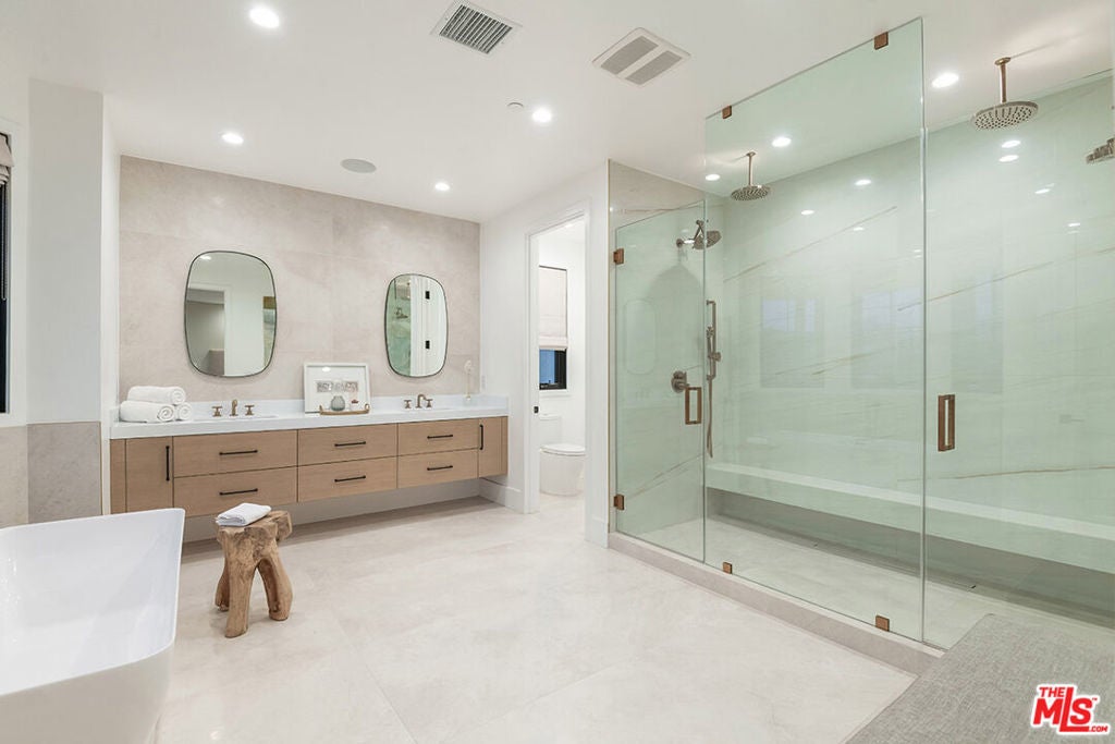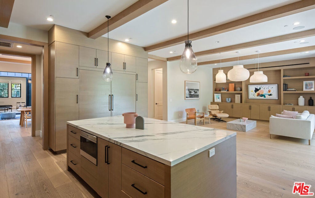 One of the finest examples of blending organic and modern design, this stunning West Hollywood home redefines luxury living with elegant design and state-of-the-art amenities. Spanning over 5,036 square feet, this smart home is a masterpiece of seamless, light-filled spaces and designer finishes. The grand primary suite impresses with double-entry doors, soaring ceilings, a walk-in closet, and a luxurious spa-inspired bathroom. The gourmet chef's kitchen features custom countertops, high-end Sub-Zero and Wolf appliances, and a butler's pantry. The open kitchen and family room flow into the outdoor living space, creating a true indoor-outdoor experience. This home is thoughtfully equipped with a dual electric car charger in the garage and a state-of-the-art whole-house water filtration system with water harmonizing, ensuring comfort and convenience at every level. Perfect for entertaining, the property includes a private courtyard with an outdoor BBQ, a beautifully landscaped backyard, and a private, state-of-the-art movie theater. With Control4 home automation, this property balances classic elegance with cutting-edge convenience, making it a standout retreat. Owner has record of previous city approved permit for a 10" x 26" pool with 10" x 5" hot tub.