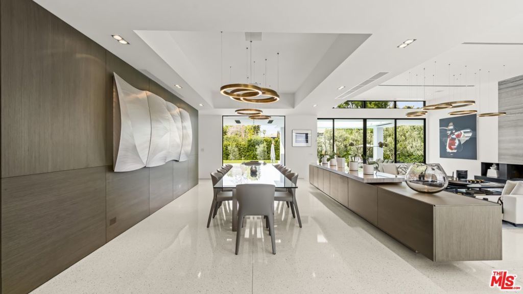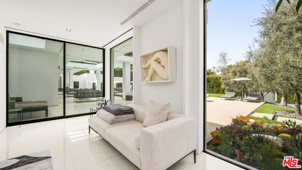 Extraordinary single-story Tennis Court estate on one flat acre in prime Royal Oaks. This newer build contemporary masterpiece is incredibly sleek and sexy-it truly is Trousdale in Encino. Custom architectural design has pristine Terrazzo floors throughout. Walled, gated, and surrounded by mature hedging, the home is set deeply off the street for maximum privacy and security. Perfect for sophisticated entertaining. Huge motor court for the car collector houses 8 cars, plus multiple additional spaces for guests. The gorgeous living room seamlessly flows to the chef's kitchen with top-of-the-line appliances adjacent to an impressive dining room. Floor-to-ceiling glass Fleetwood doors which wrap around the sweeping property allow you to fully open and live your dream indoor-outdoor lifestyle. The main bedroom feels like the ultimate 5-star hotel suite. Gorgeous dual walk -in closets, black-out shades, radiant heated flooring in a bathroom flooded with natural light. A great media room, a voluminous wine storage room, and the separate guest wing accommodate a killer office and gym. The outdoor kitchen with covered patio features heaters and disappearing glass doors that make the entire property flow.