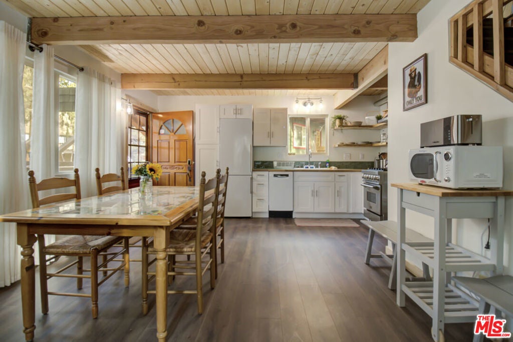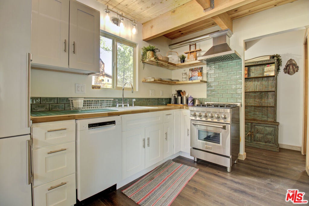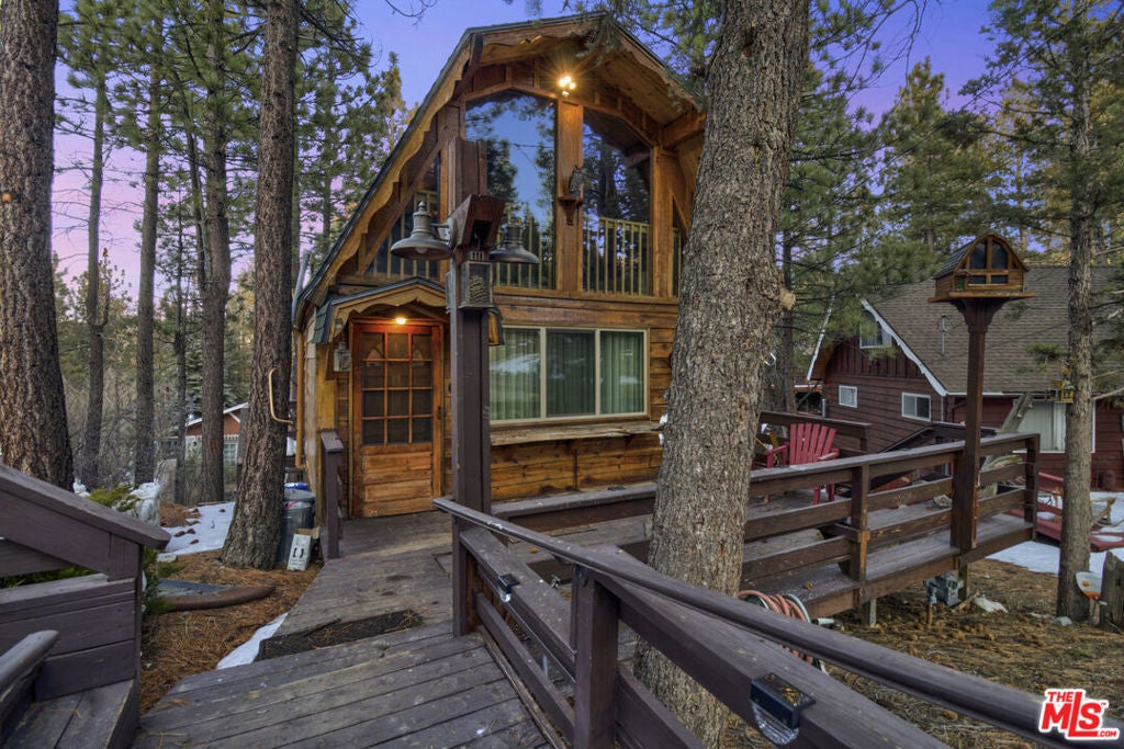 Beautiful cabin in a great location in Big Bear City. This cabin has been completely remodeled down to the studs with very nice and clean finishes. Brand new appliances have been installed including a stove and refrigerator. All windows were upgraded to double pane glass and a French door was added to the bedroom downstairs. A gorgeous claw foot tub was added to the beautifully designed bathroom and a bowl sink with shelfs are also a great touch for this amazing bathroom. Located in a Cul-de-sac, this property is hidden from main roads but yet, close to hiking trails, Big Bear Blvd and many other amenities that are within a few minutes driving. This peaceful setting is perfect for enjoying your coffee or meal in one of three decks of which two of them overlook the treetops in the back of the cabin. There is an unfinished basement that could be converted into a game room or storage. This cabin has your name written all over and it's calling you to come have a look at it and totally love it. Pictures do not make it justice. Come visit this lovely home and have a place that you can call yours. There are two parking spots for this property