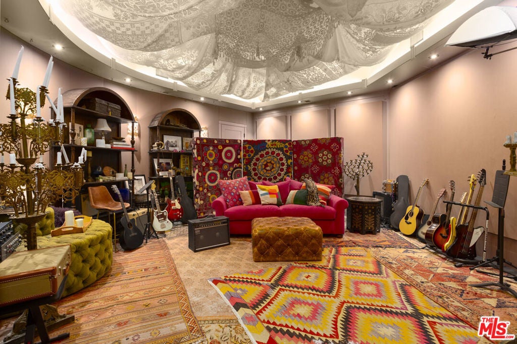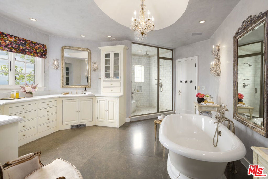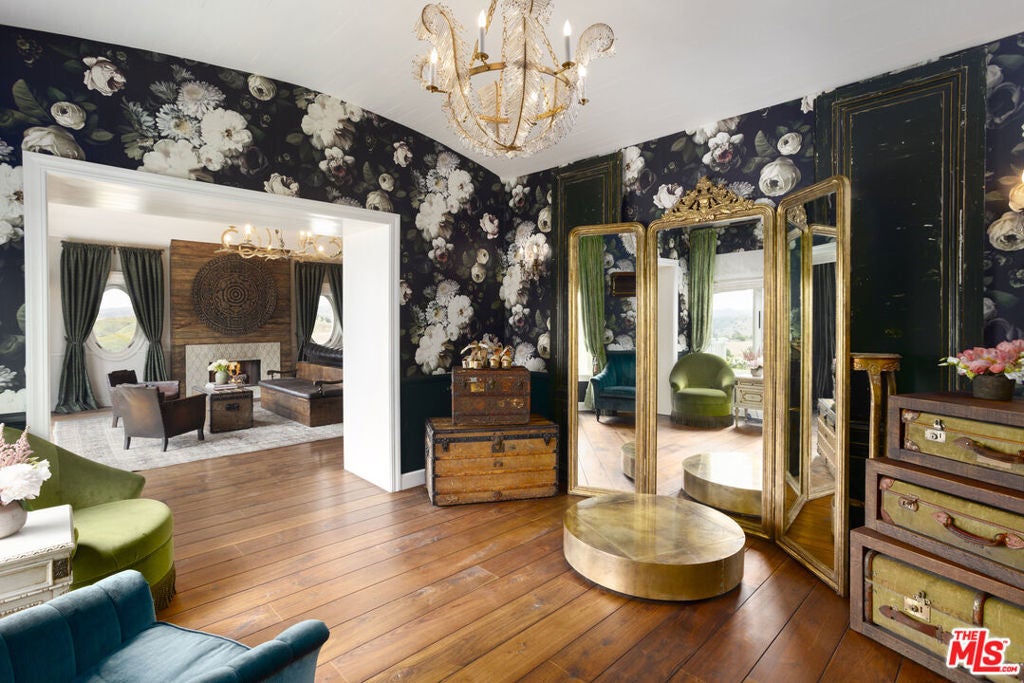 Nestled within the highly sought-after guard-gated community of Hidden Hills, this private retreat, tucked away at the end of an intimate cul-de-sac, spans approximately 13,274 square feet and rests on 2.25-acres, offering mesmerizing city lights and mountain views that will leave you breathless. As you step inside, you'll immediately be struck by the grandeur of this home. Featured in the esteemed pages of Architectural Digest, every detail has been meticulously crafted to create a truly captivating living experience. Awe-inspiring features abound, including eight spacious en-suite bedrooms with beautifully appointed baths, a guest house complete with a kitchenette, and an intricately paneled study featuring a warm fireplace. The exquisitely accented formal dining room sets the stage for unforgettable dinner parties, while the dramatic foyer boasts a stunning spiral staircase and floor to ceiling windows that flood the space with natural light. The heart of this home lies in its state-of-the-art chef's kitchen, where culinary dreams come to life. Showcasing top-of-the-line Wolf appliances, a walk-in pantry, a central island, and a breakfast nook. The family room is a true sanctuary, with oversized sliding barn doors, a fireplace adorned with reclaimed brick, and beamed vaulted ceilings that create an inviting & relaxing ambiance. Retreat to the luxurious primary suite, featuring a comfortable sitting area, a stone fireplace, and an expansive his-and-hers walk-in closet, that exudes grandeur. The expansive rear grounds are a true outdoor paradise, where relaxation and entertainment seamlessly blend. Rolling lawns, a sparkling pool with a separate shallow pool, a rejuvenating spa, a BBQ island, and convenient amenities like an outdoor shower and bathroom create an idyllic setting for enjoying the Southern California lifestyle. Here you can immerse yourself in the breathtaking vistas that stretch beyond, making every moment spent outdoors a feast for the senses. This home offers an unrivaled opportunity to experience the epitome of upscale living in one of the most exclusive communities. Don't miss your chance to own this remarkable property and create a lifetime of cherished memories.
