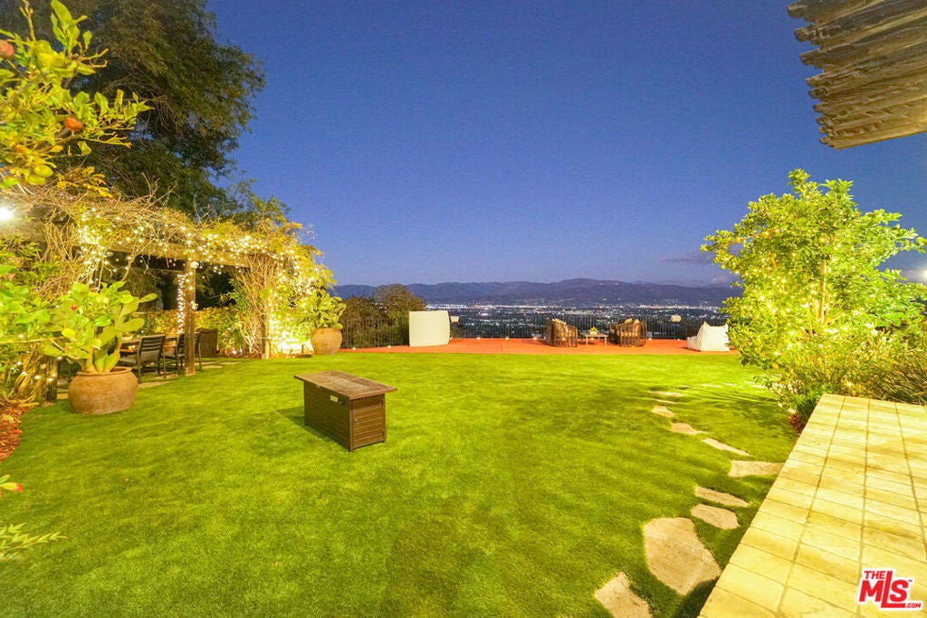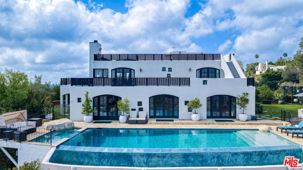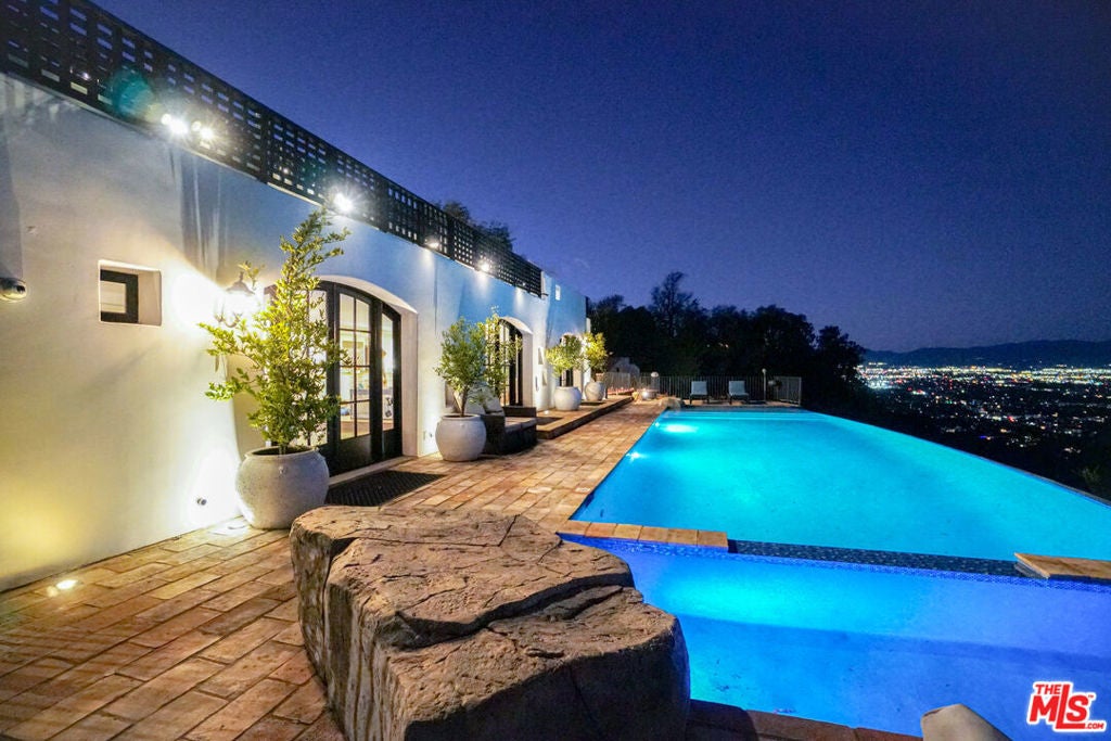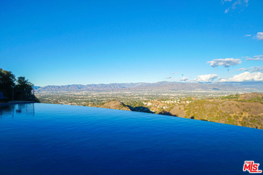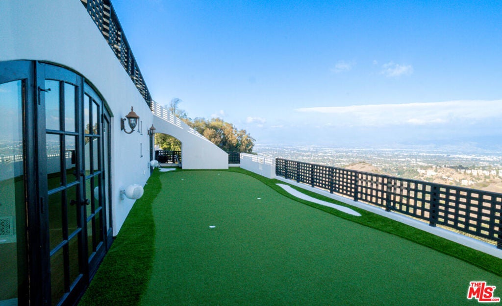 Seeking the ultimate Beverly Hills sanctuary where you can leave behind the hustle and bustle of everyday life? Look no further than this beautifully crafted secluded estate that provides the perfect blend of luxury and tranquility while being just moments from everything LA has to offer! Enviably set on over an acre atop famed Mulholland Drive, this residence commands spectacular views from an impressive 1,300 ft above sea level. A gated, private driveway leads to the grand 2-story facade. Inside, new luxury flooring and dark wood trim tastefully contrasts crisp white tones. Graceful archways greet you in the generously sized open entertainment areas as you seamlessly transition from one room to another. Multiple French doors in the family room and dining area frame sweeping panoramas of the city, ocean, and Catalina Island. A raised-hearth fireplace with a stacked-stone surround anchors the stylish volume ceilings, warming the living room as you gather. Shake up your favorite cocktails and head outside to relax by the infinity pool and appreciate the stunning views in absolutely every direction you look. Sleek and sophisticated, the chef's kitchen equips you with top-notch stainless steel appliances, abundant white wood cabinetry, granite countertops, an oversized island, and a breakfast nook with access to the patio. Working from home is even better in your private office overlooking breathtaking views. Admire picturesque sunsets from your well-sized bedrooms, adorned with mirrored closets and French doors that open to the large wraparound balcony. Surpassing all in size, the primary suite has a walk-in closet and an ensuite with a spa-like soaking tub and scenic views. Endless hours of fun and leisure await in your expansive outdoors that offers numerous entertaining decks, a resort-style infinity pool, two putting greens, and a pool cabana. Alfresco dining is bliss under the pergola as you enjoy delicious meals prepared on the built-in BBQ island. On cooler nights, sip a refreshing nightcap as you take a soothing dip in the rooftop spa while watching the sunset views and city lights twinkle below. Other notable features include a large private vineyard, a koi pond in the zen garden, a waterfall, and a professional music studio. The estate vineyard produces private reserve wines with multiple varietals, including Pinot Noir, Sauvignon Blanc and Cabernet. The golf decks are beautifully manicured with 9 holes and white artificial sandpits. Convenience is yours with smart-home technology including a Control4 music system, two Nest-operated HVAC units, app-controlled landscape lighting, home protection system, wireless pool features and a 16-camera CCTV system. Its fabulous location puts you near the world-class shopping, dining, and attractions of the Sunset Strip, West Hollywood, and Beverly Hills. Come grab the rare chance to call this Mulholland Oasis home!