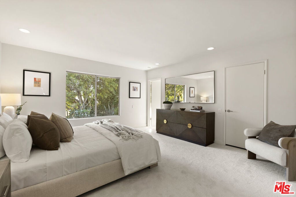 Situated on one of the most prestigious streets in Beverly Hills, this predominantly single-story home spans 5,200 square feet of refined interiors, set on a 26,607-square-foot lot. The home features five spacious en-suite bedrooms, six bathrooms, and soaring 14-foot ceilings that enhance the open, airy ambiance. Floor-to-ceiling windows on both sides of the living areas invite abundant natural light while framing views of the surroundings. A large circular driveway leads to a three-car garage, ensuring convenience and elegance from the moment you arrive. The backyard is a private oasis, complete with a pool/spa and ample space for outdoor living and entertaining. This is a rare opportunity to own a home in one of Beverly Hills' most sought-after locations. Also available for furnished for $35,000/mo and for sale for $10,995,000.