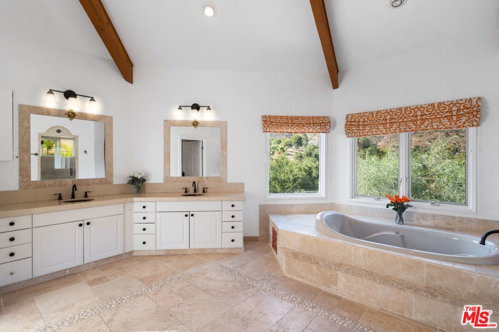 Malibu Retreat with forever mountain views and surrounded by open space! This private mountain oasis exudes the ultimate in tranquility. Almost 2 acres and adjacent to 160 acres of State Park land. There are easy and endless hiking and riding opportunities available. Gated and secluded, yet only 10 minutes to the beach, 15 minutes to Westlake/Thousand Oaks, and 15 minutes to Malibu's shopping and restaurants. 3 bedrooms, children's "playroom", 3.5 baths, large living room with fireplace and loft, gym with steam shower, infrared sauna, huge primary suite, oversized 3-car garage, with workshop/storage area, fruit trees, cactus garden, greenhouse, oak trees and seasonal stream. This home is essentially "off the grid" with solar, Tesla batteries, and well water. Separate and fully-equipped 2 bedroom, 1 bath private/detached guesthouse with 500 SF of deck.